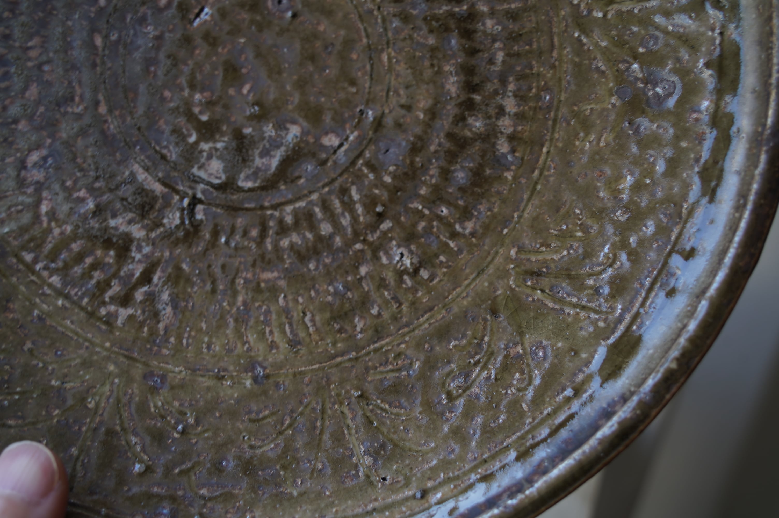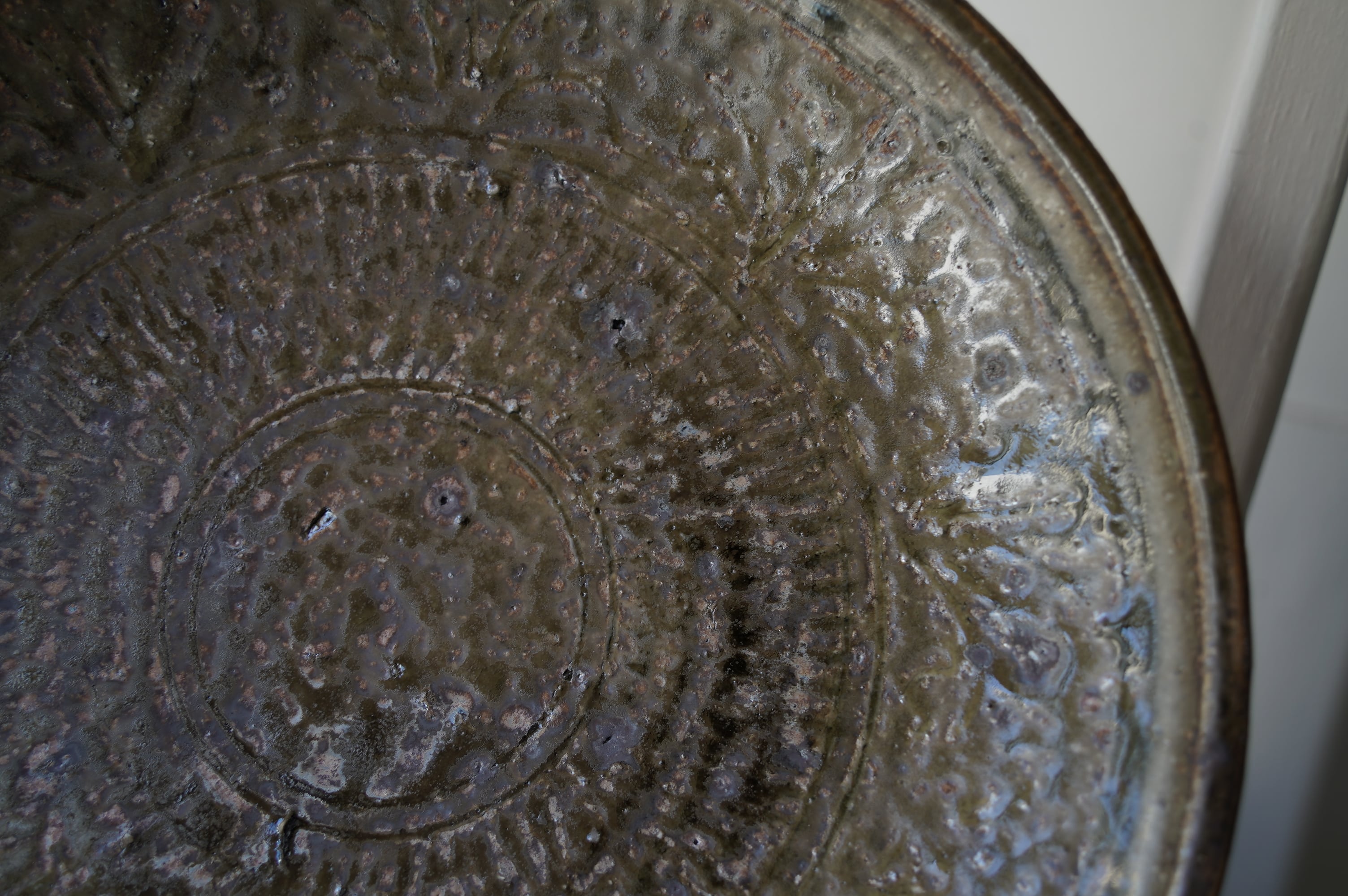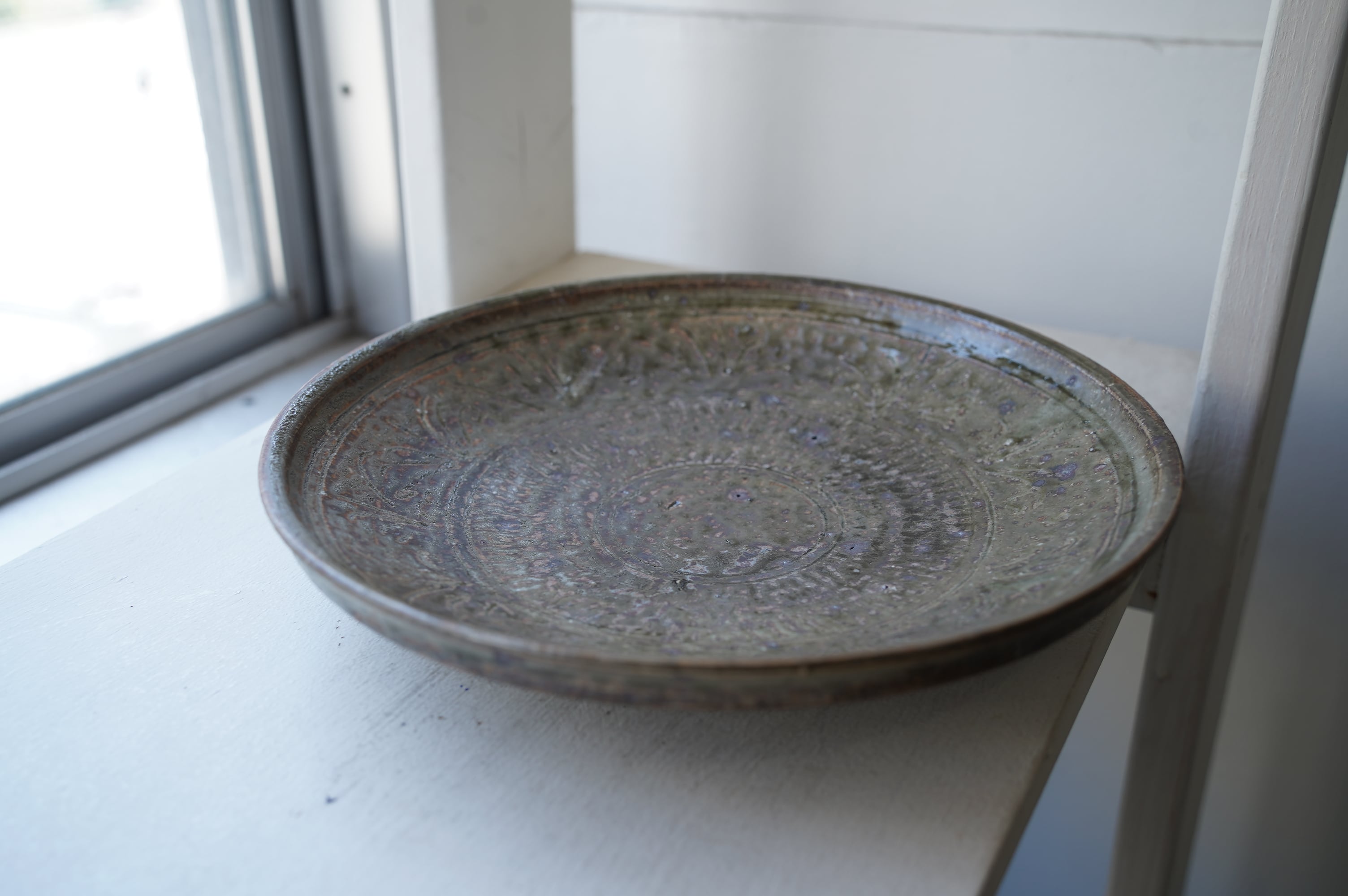 48 灰釉7寸釘彫浅鉢 中根楽 1