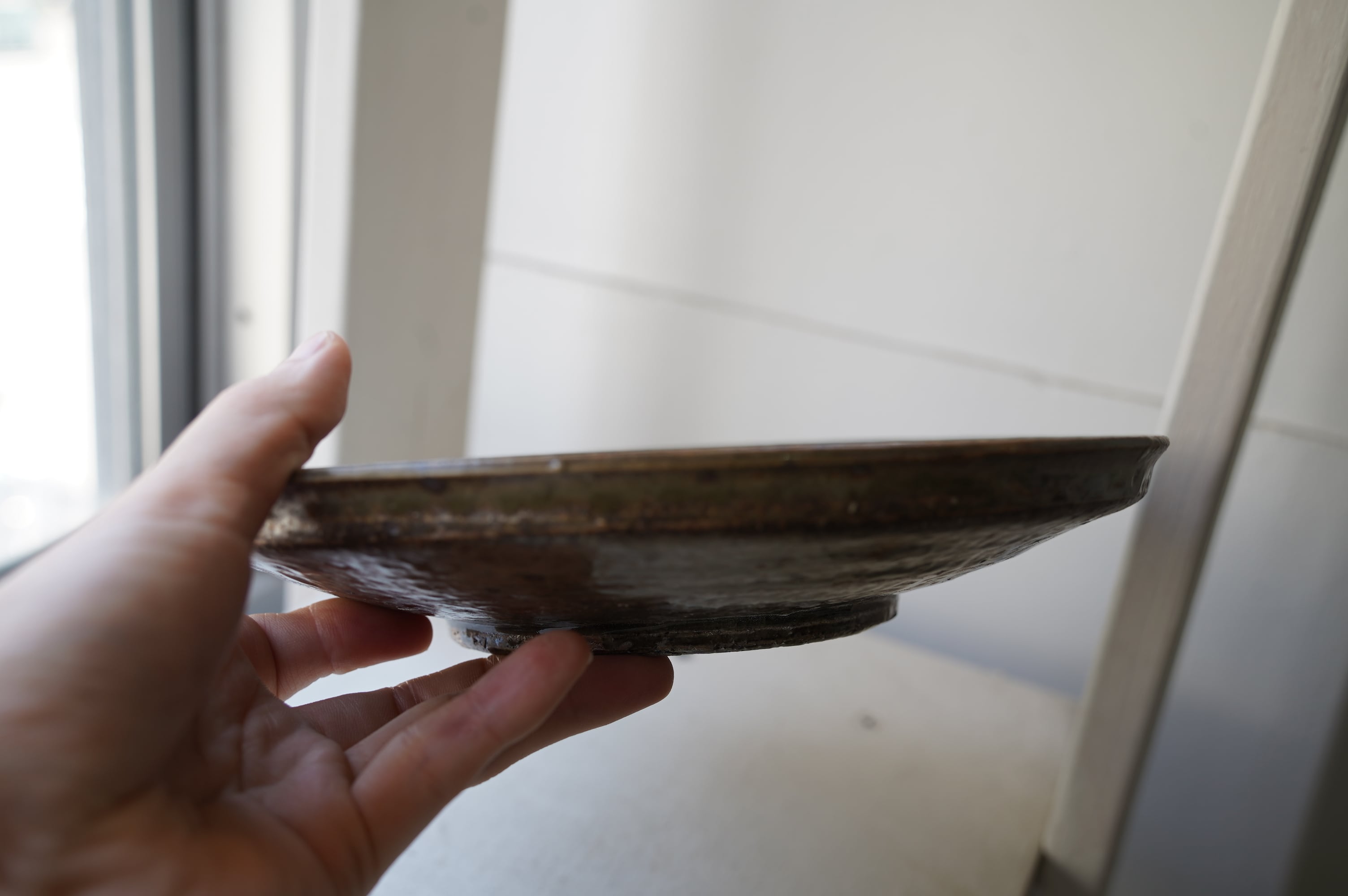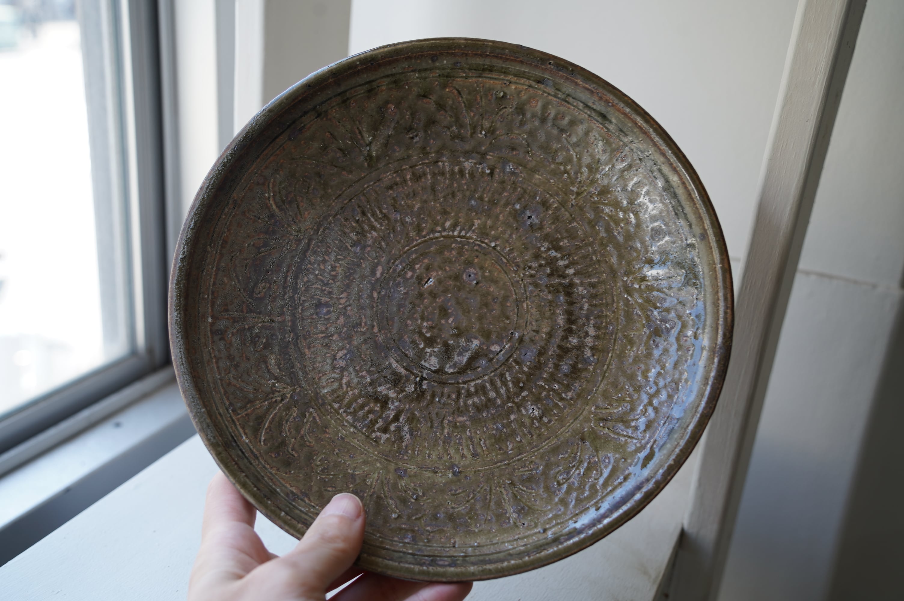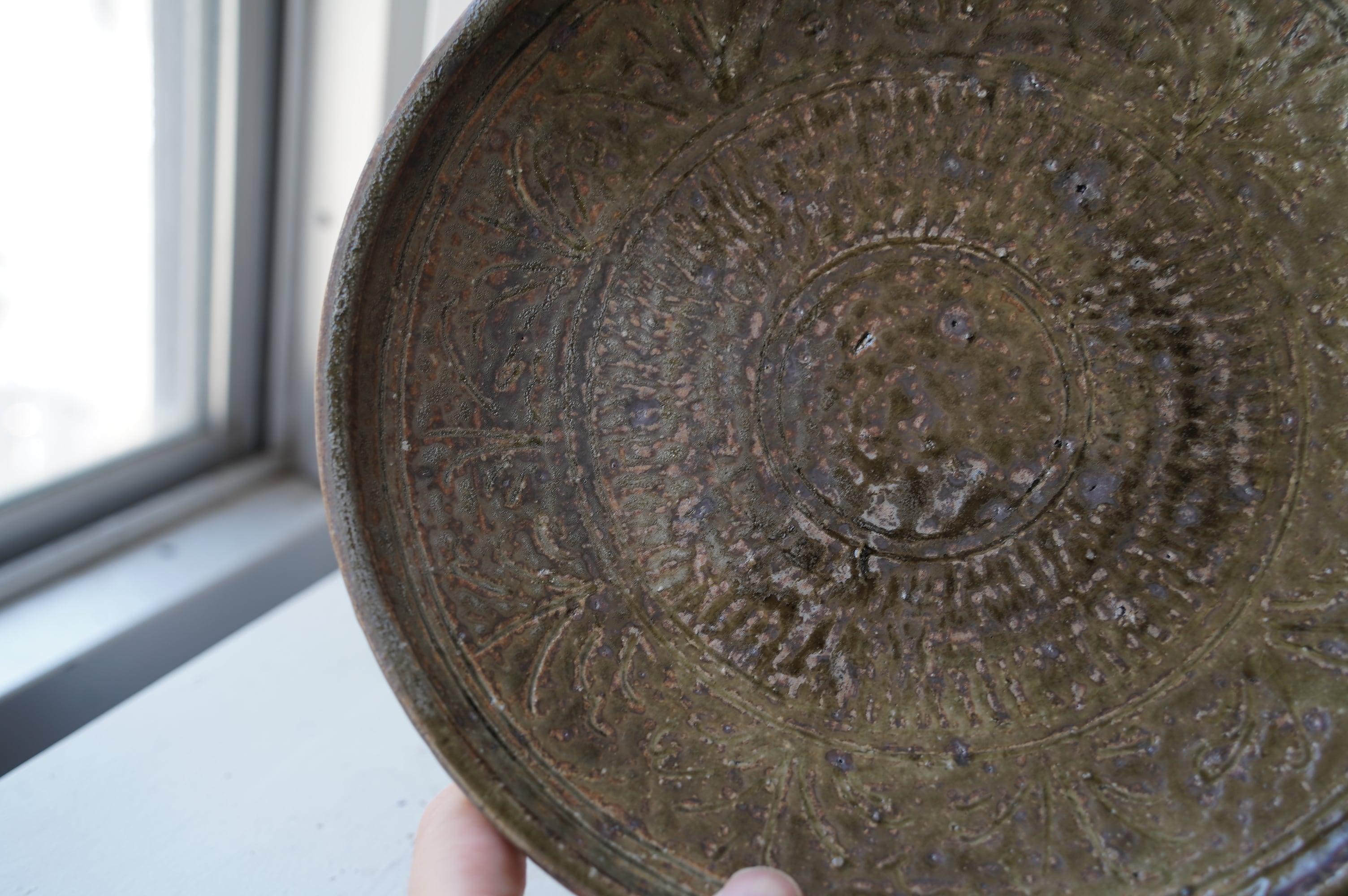 48 灰釉7寸釘彫浅鉢 中根楽 1