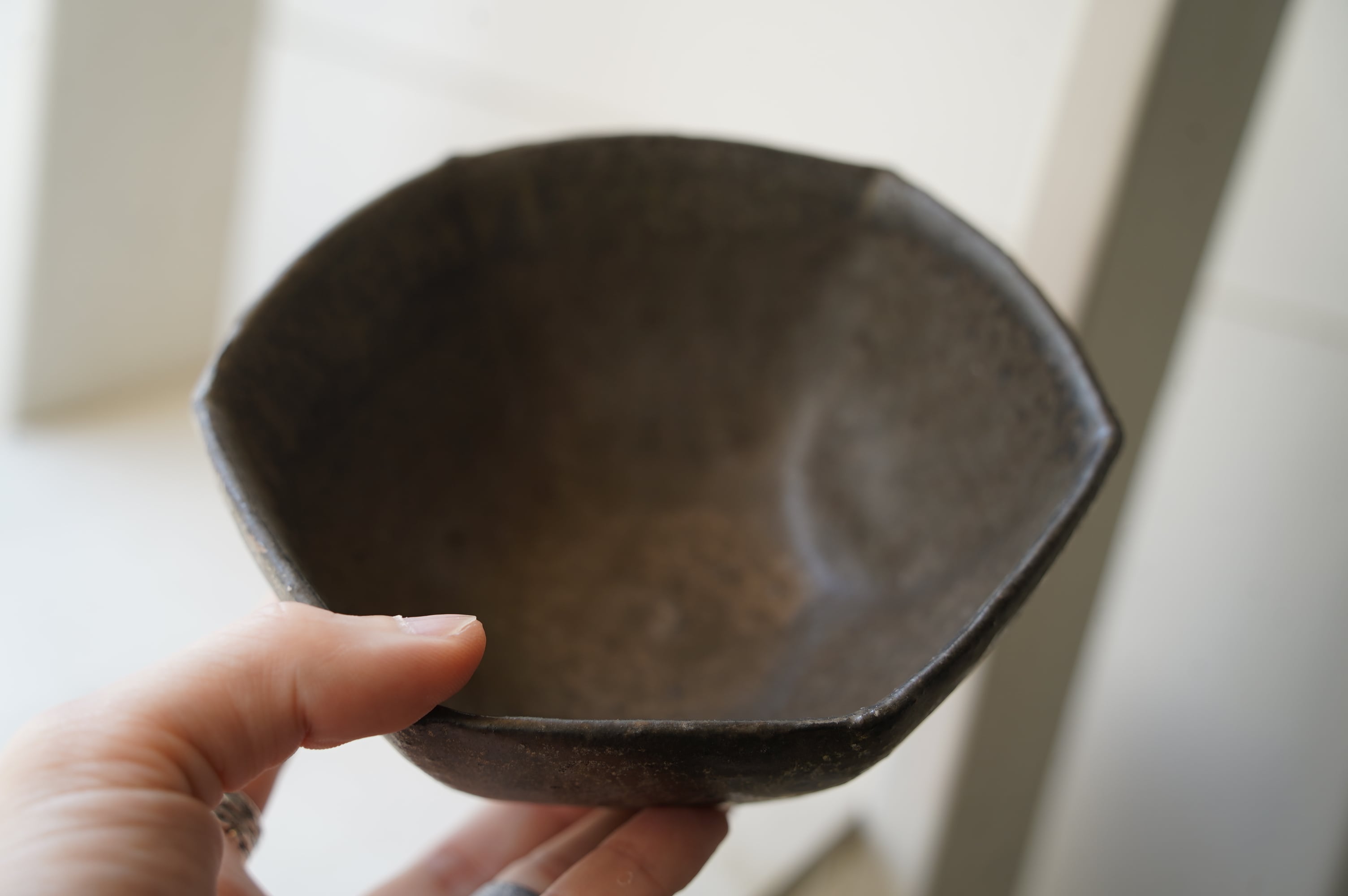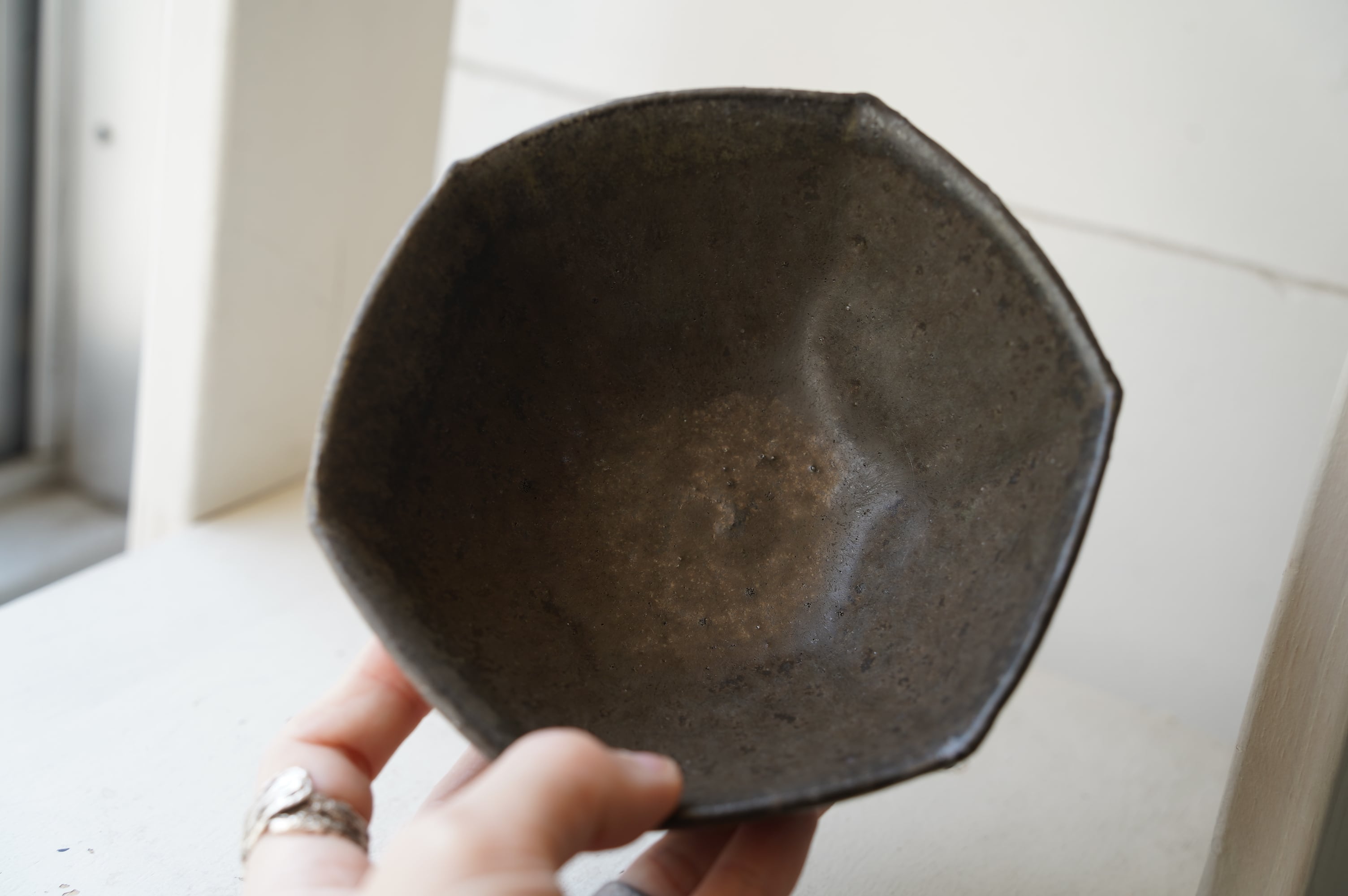 38 鉄釉6角小鉢 中根楽 2 緑