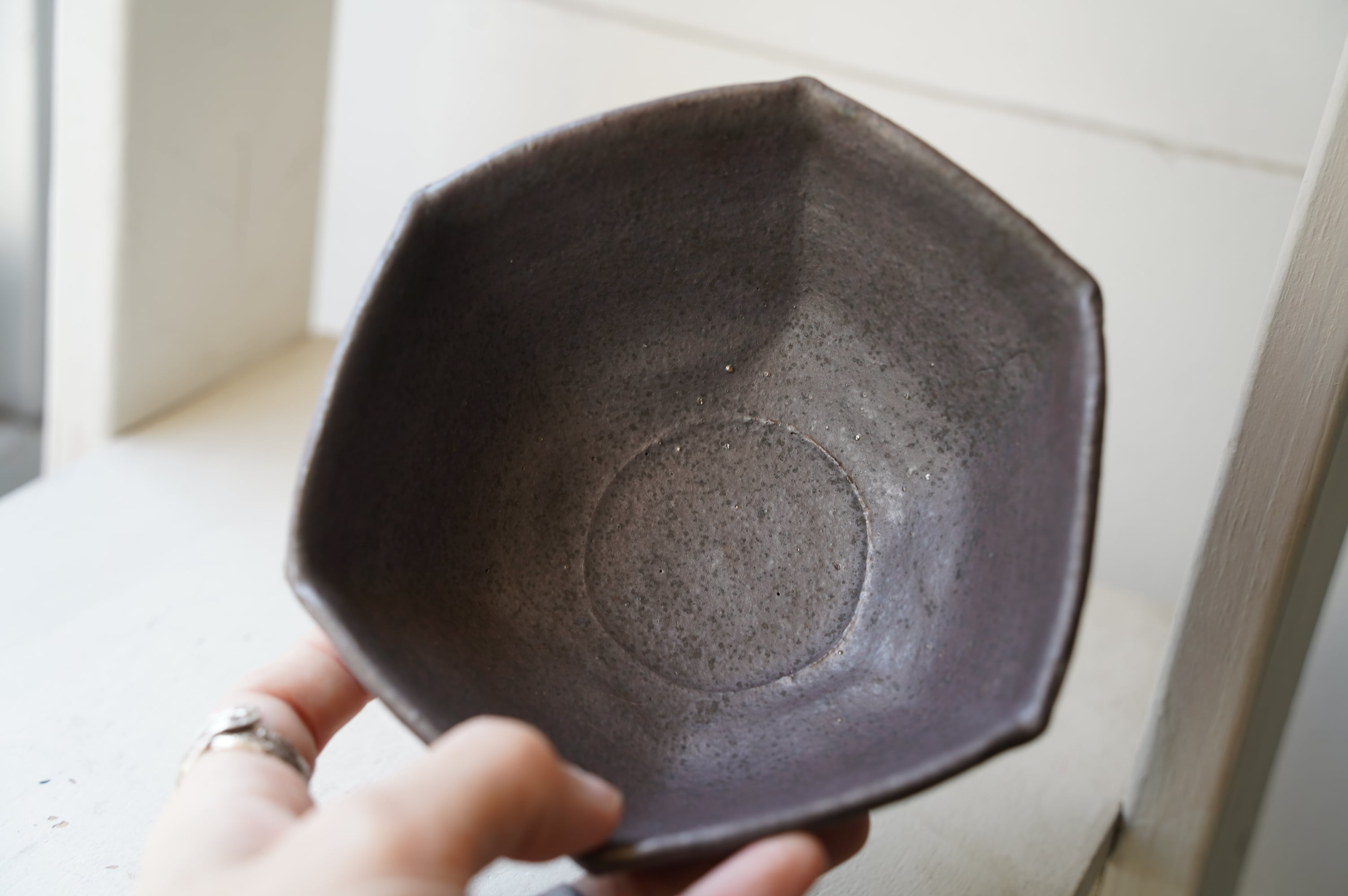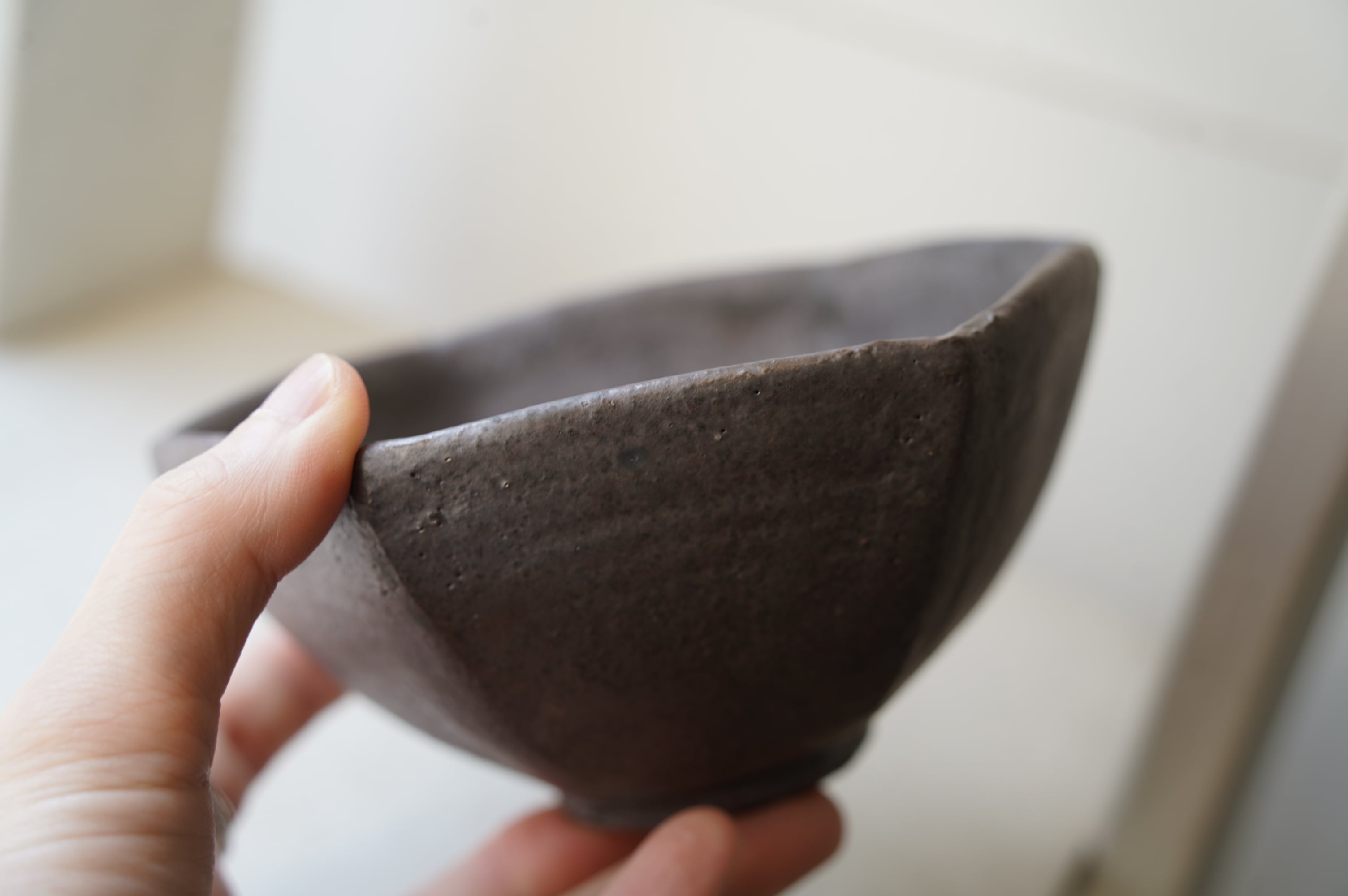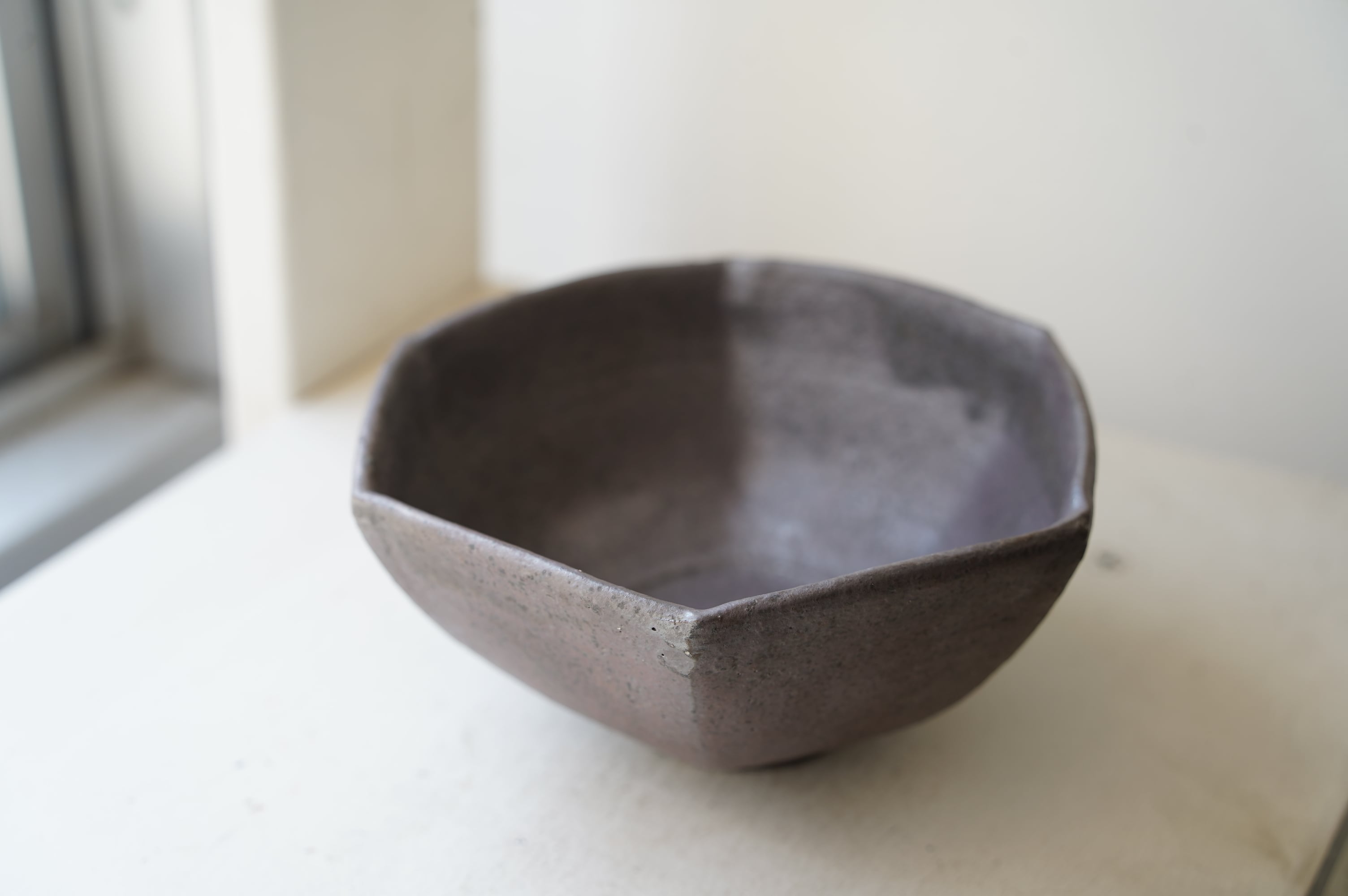38 鉄釉6角小鉢 中根楽 3 赤