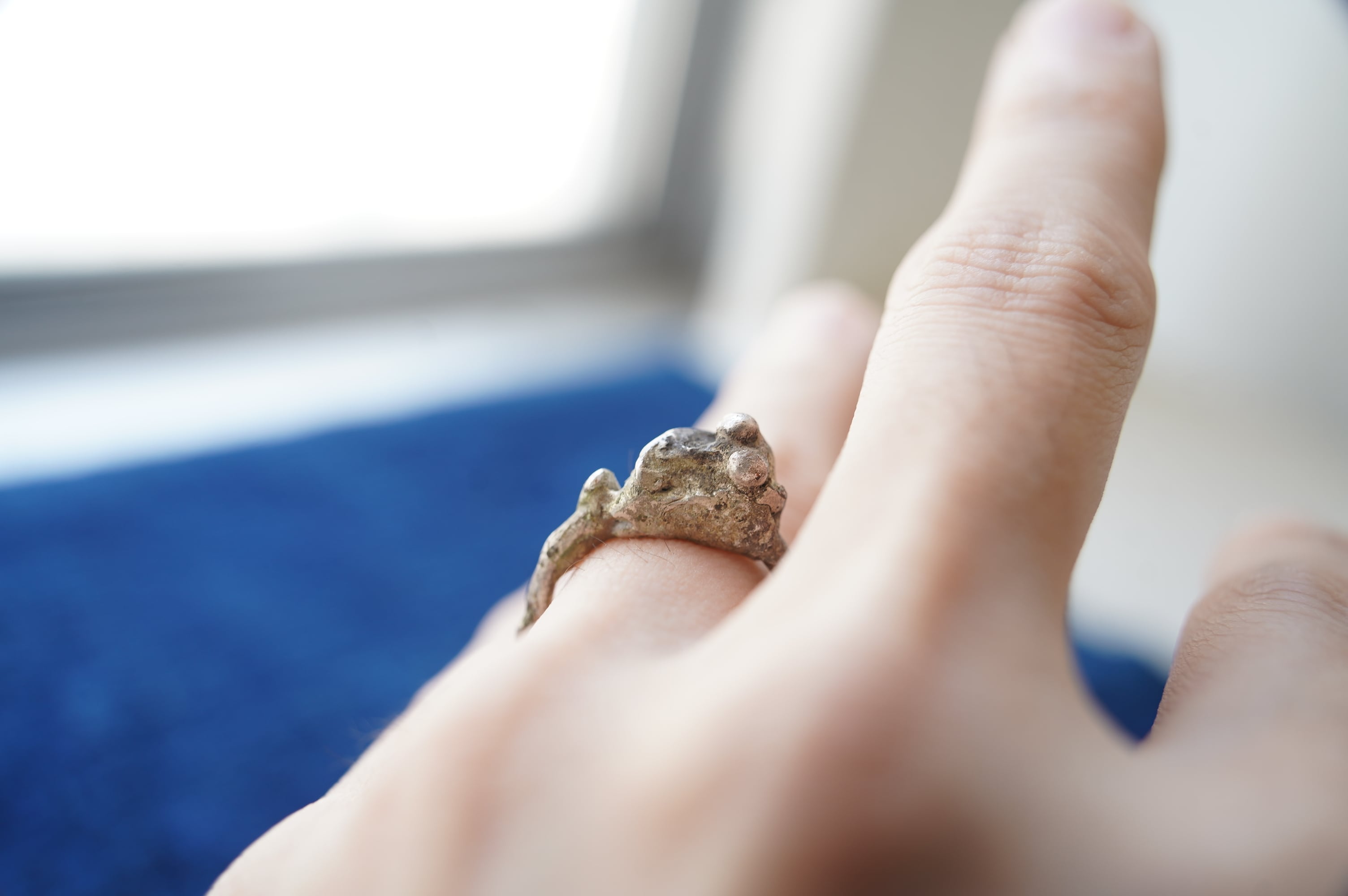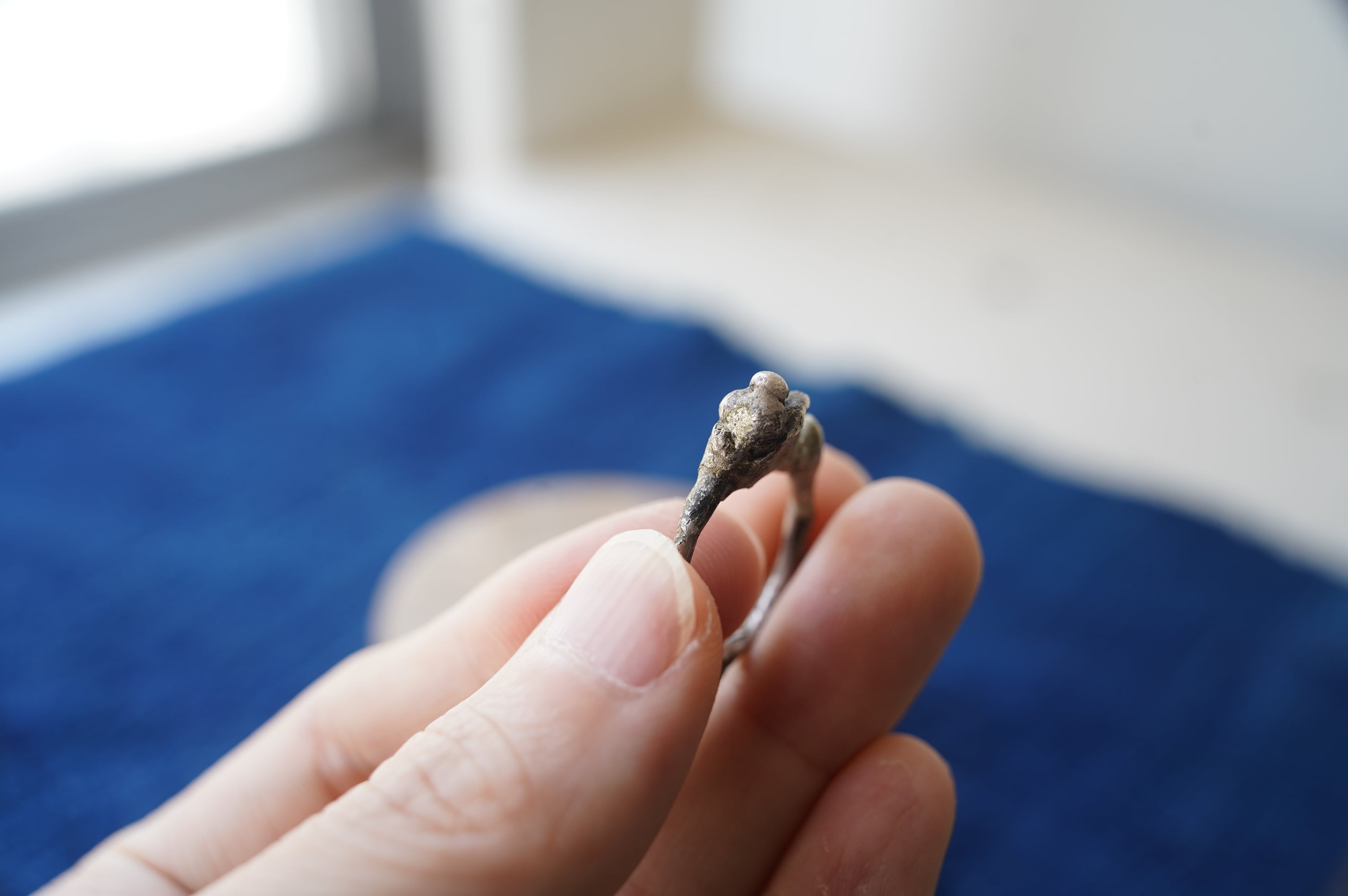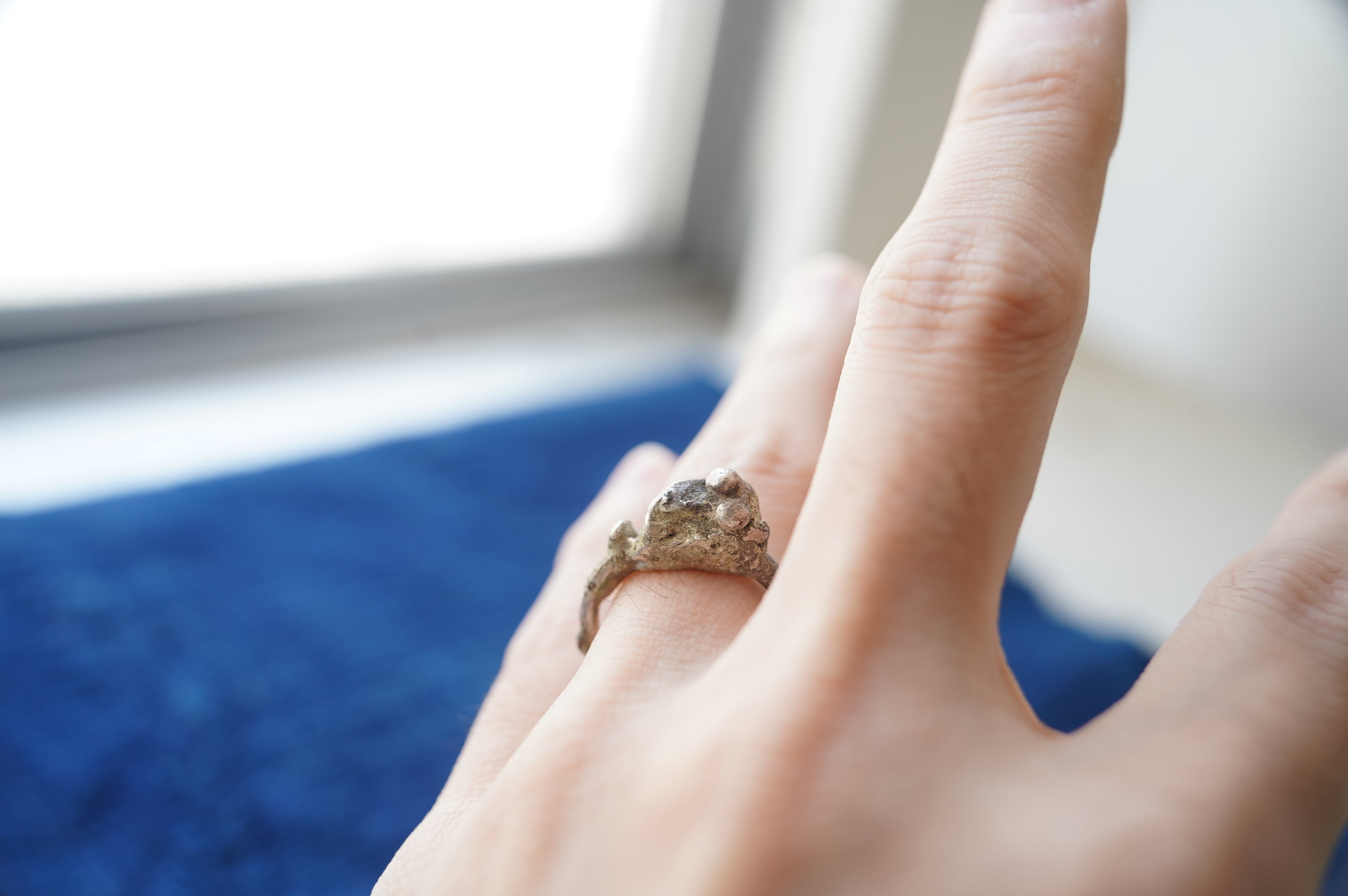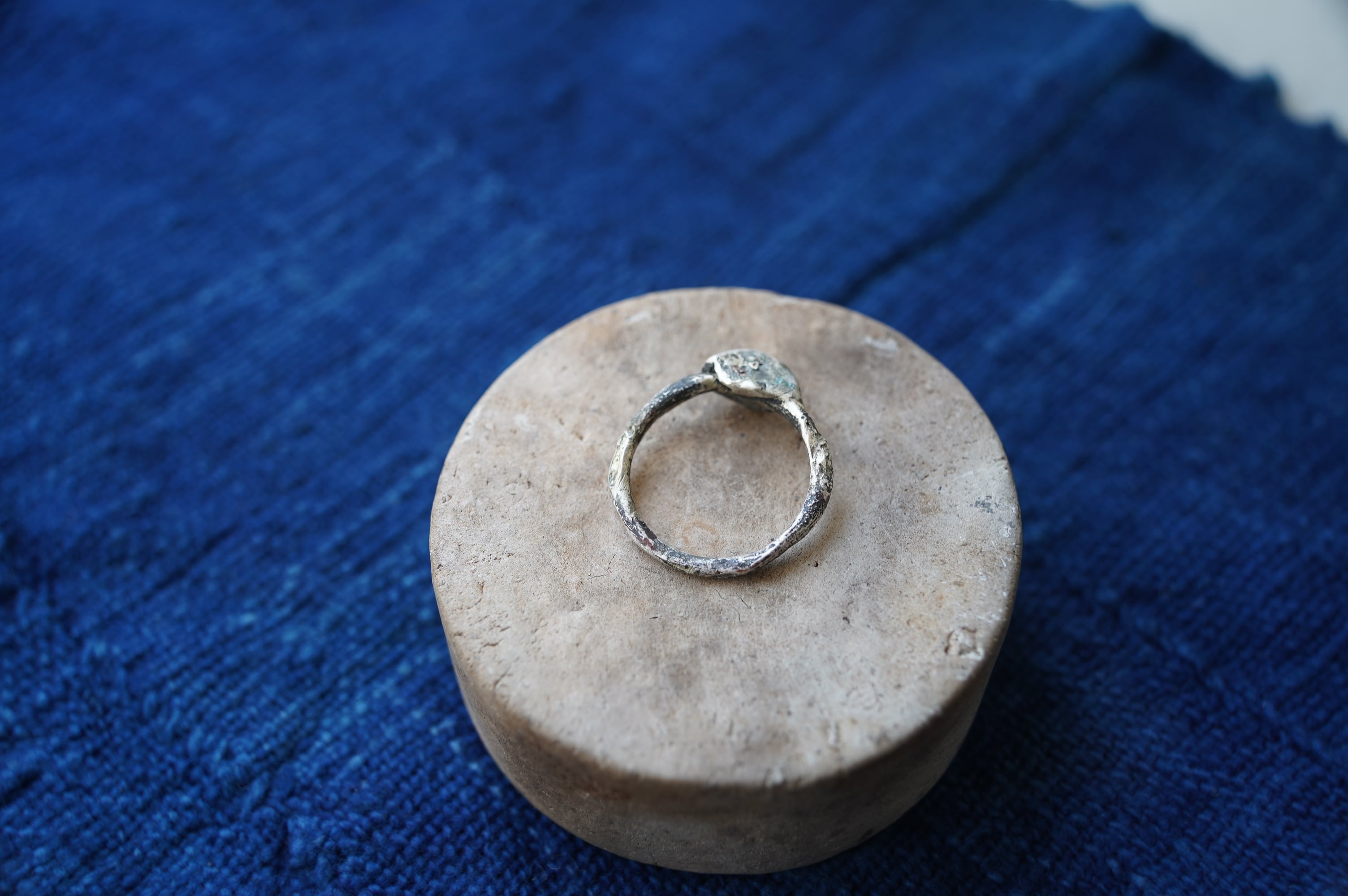 鈴木友紀さんのシルバーの指輪 「小石a」を再度炙り焼き付けて作り変えた再構築シリーズです。発掘品のようなテクスチャーが唯一無二です。