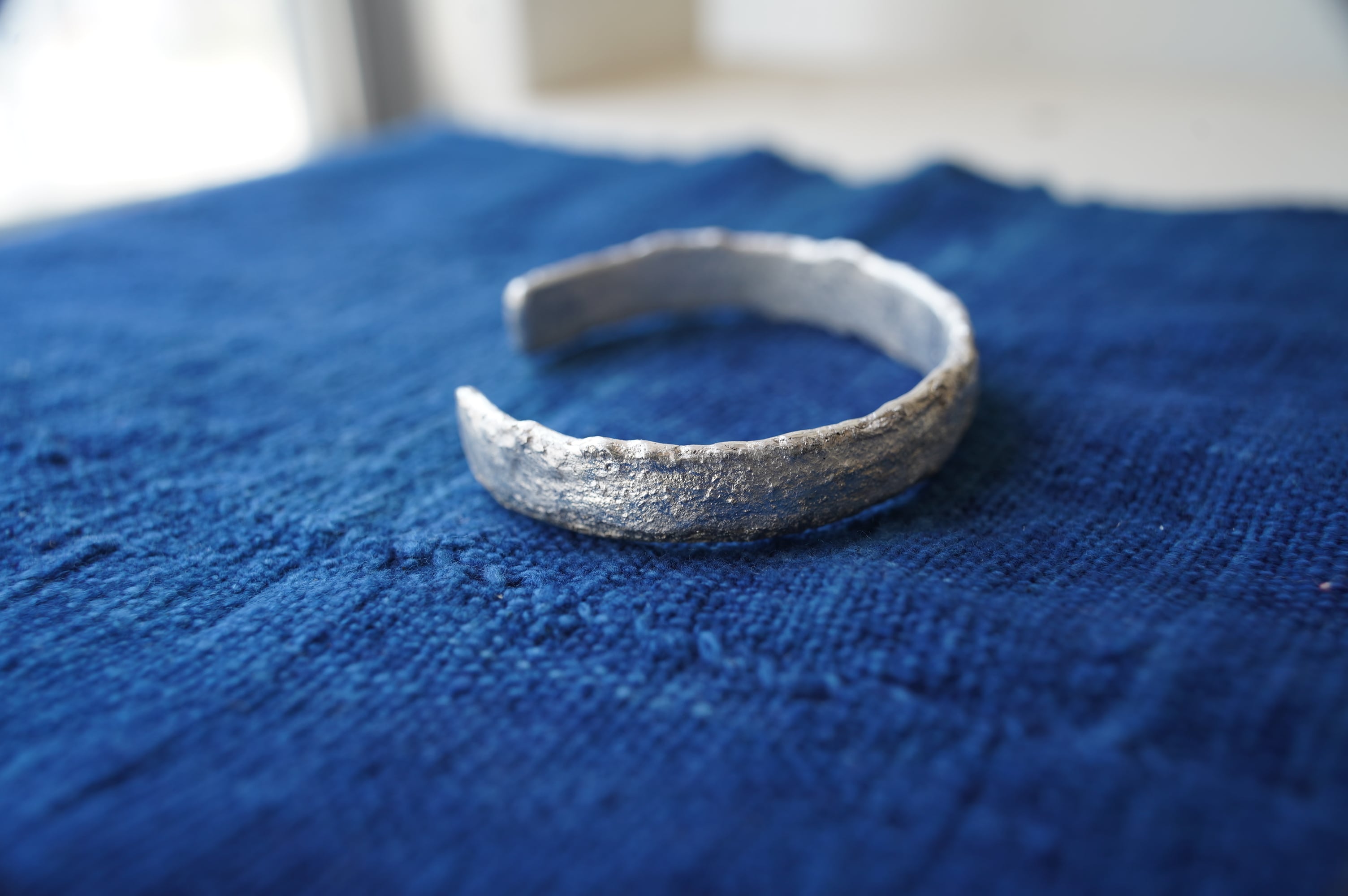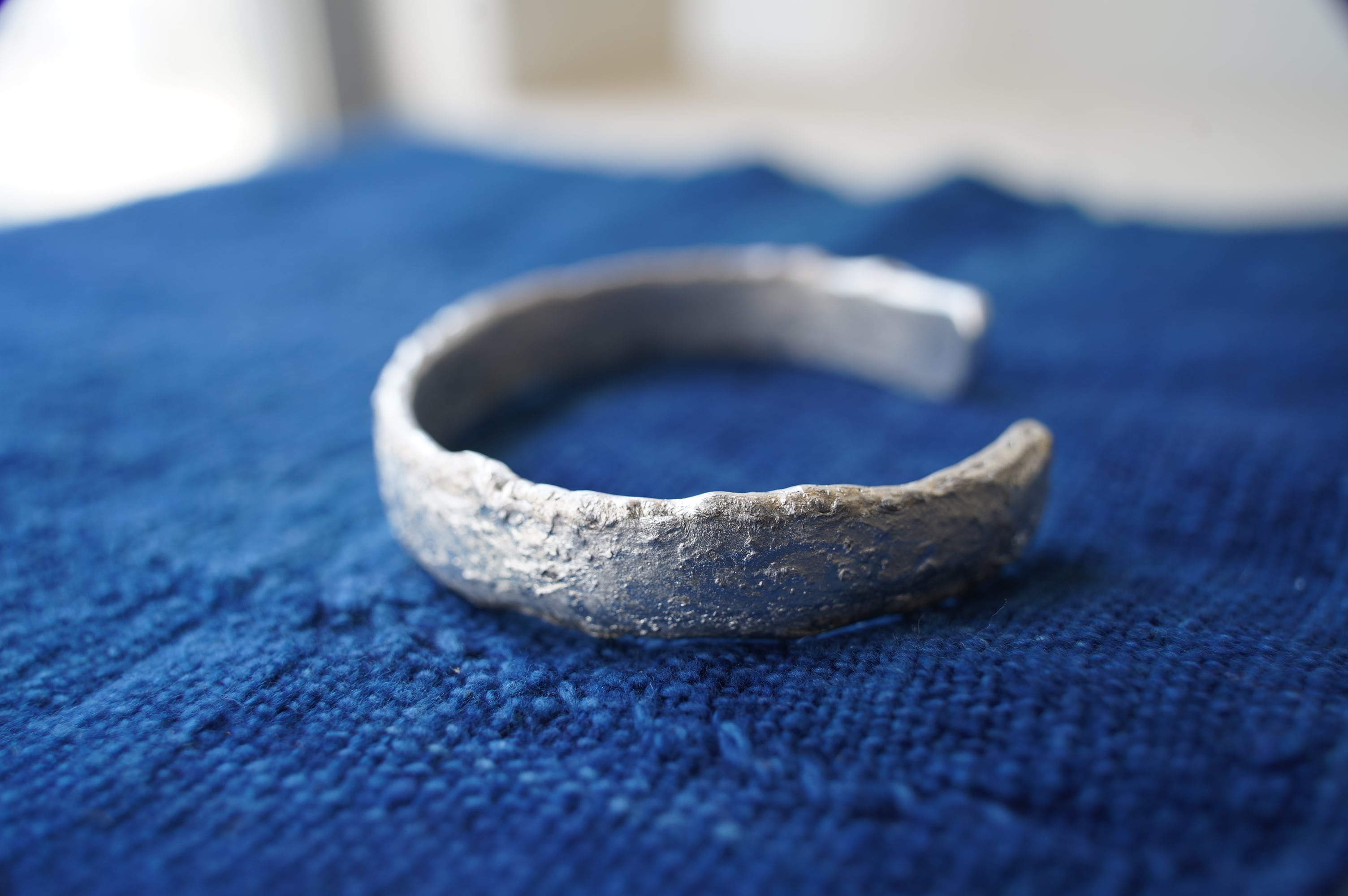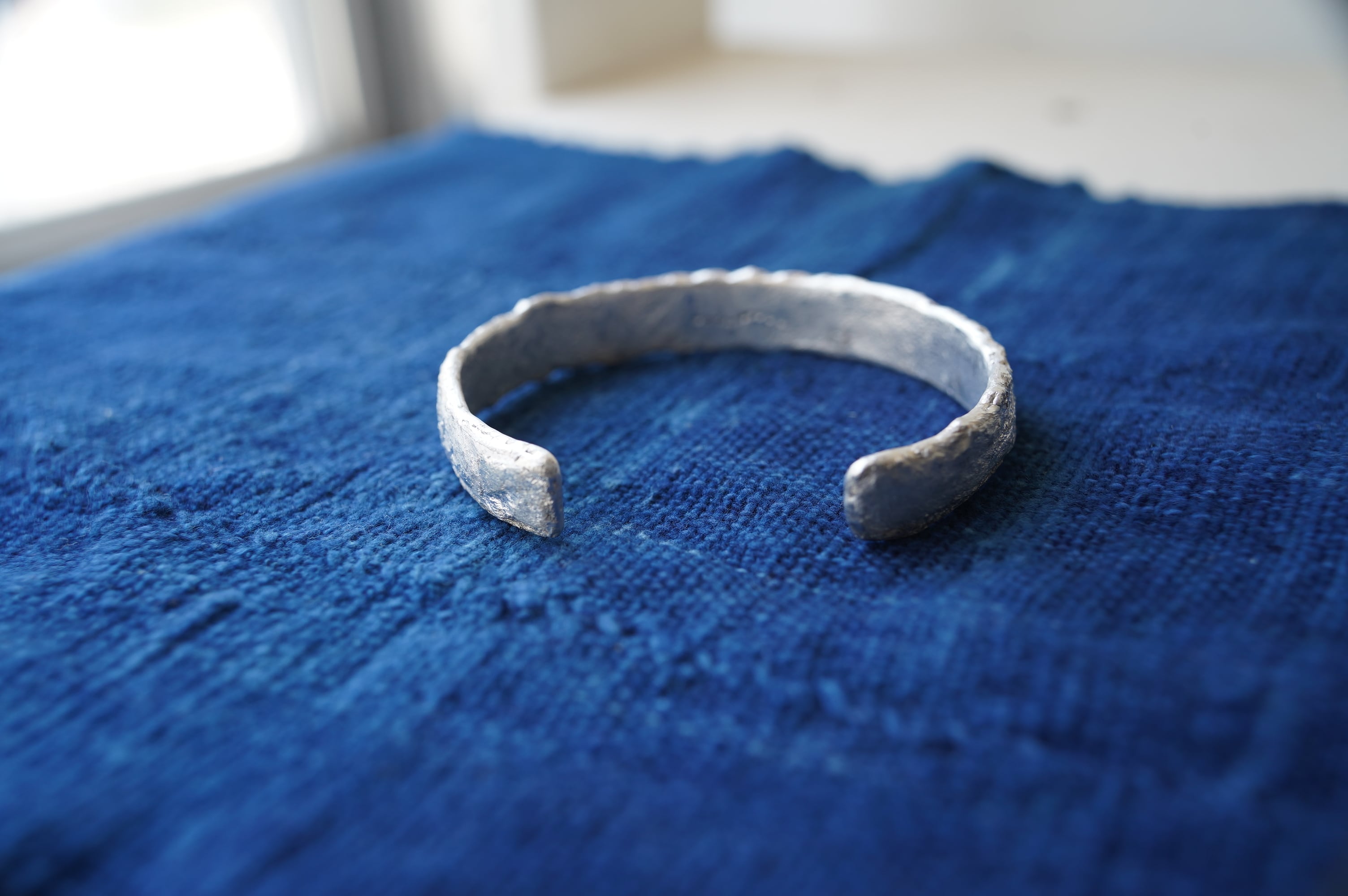 今回の鈴木さんの個展の見どころ、アルミ素材のバングル。