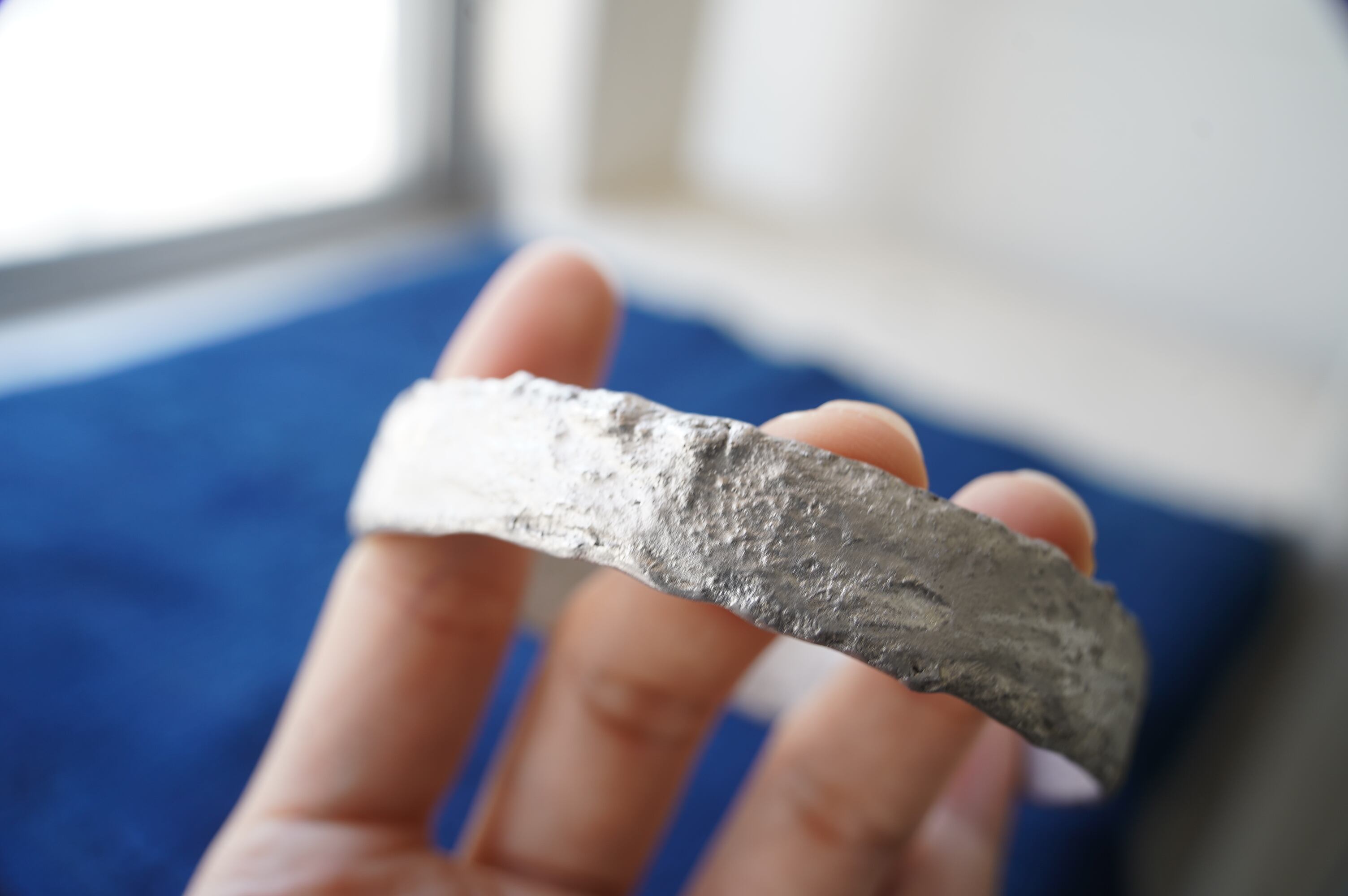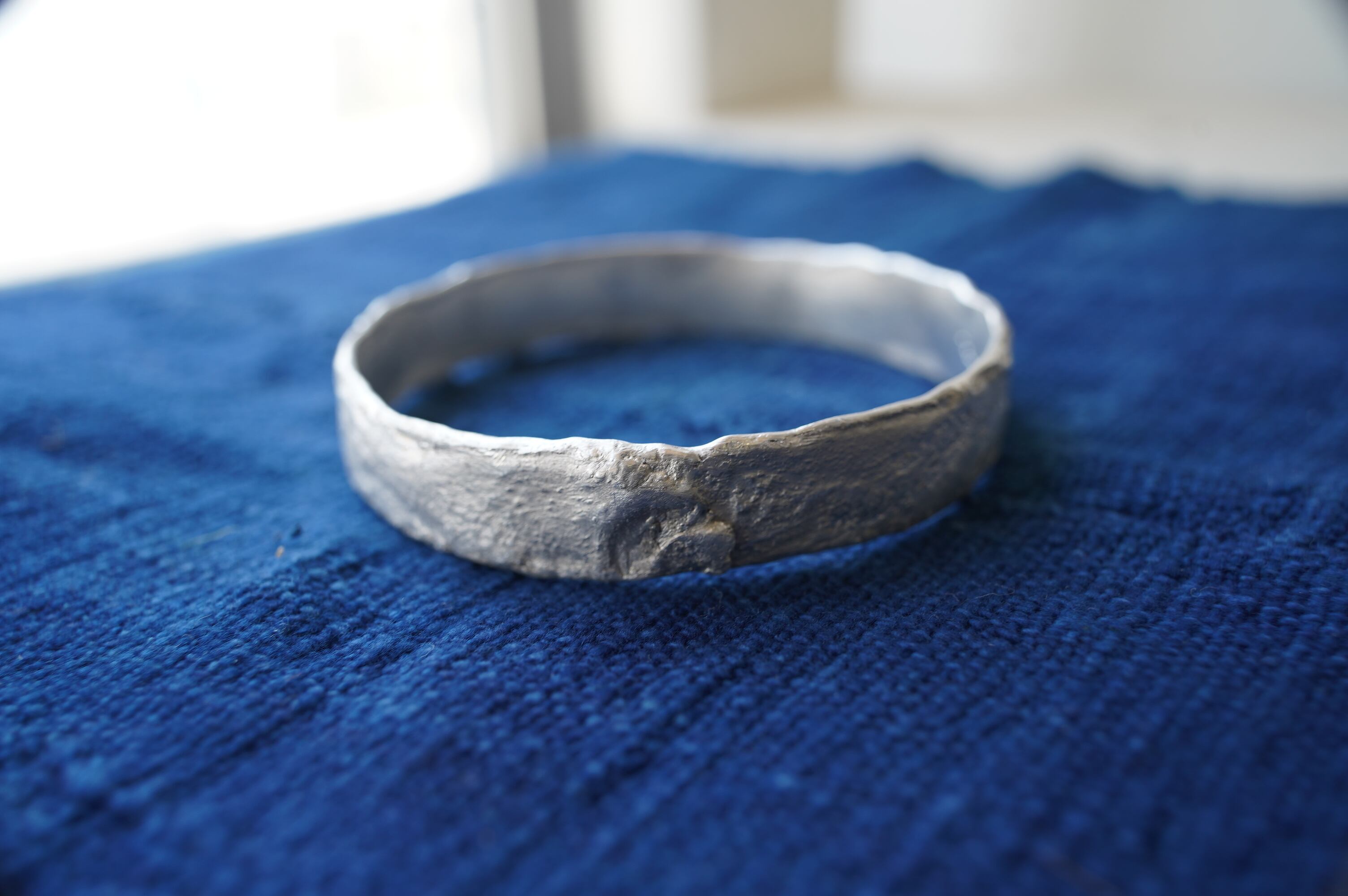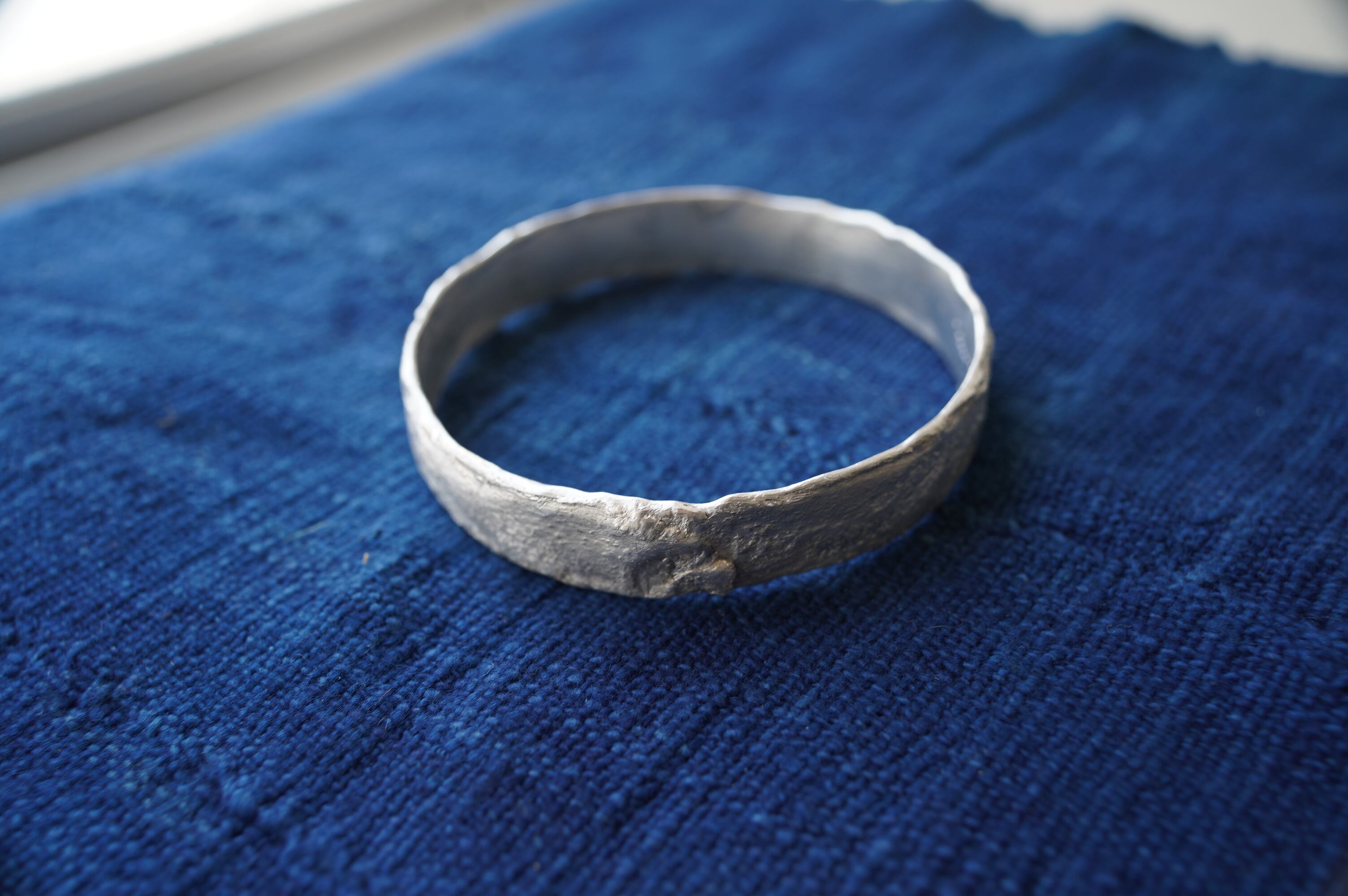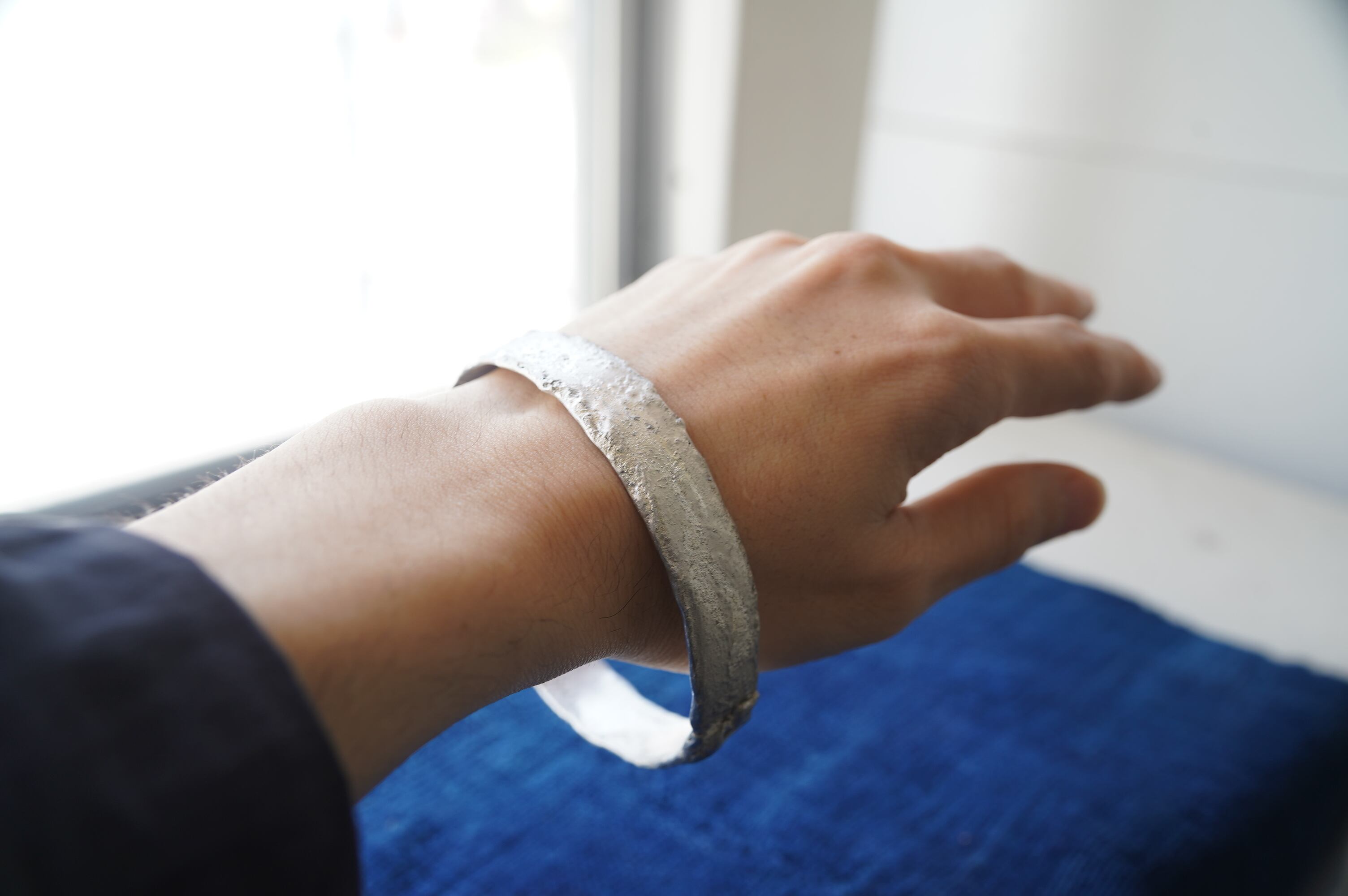 今回の鈴木さんの個展の見どころ、アルミ素材のバングル。