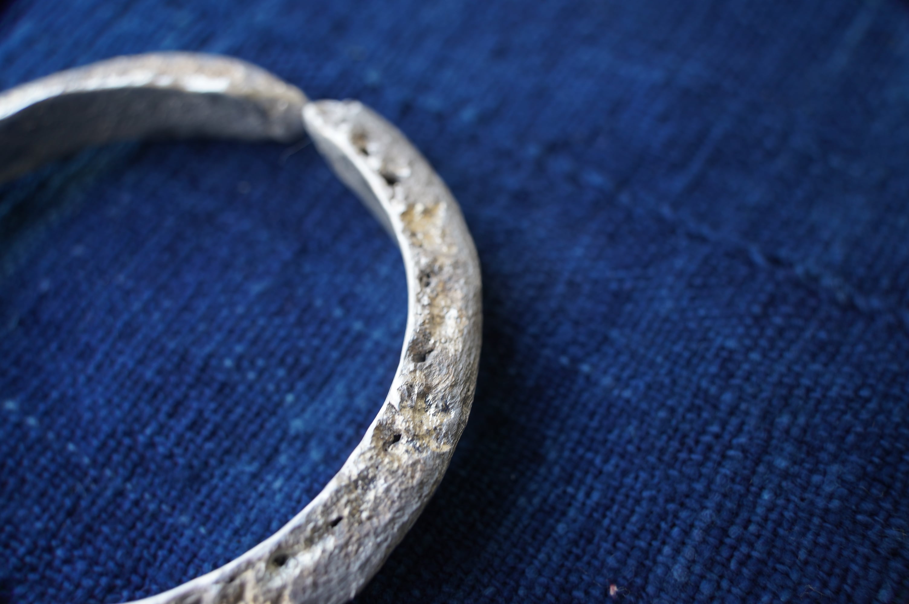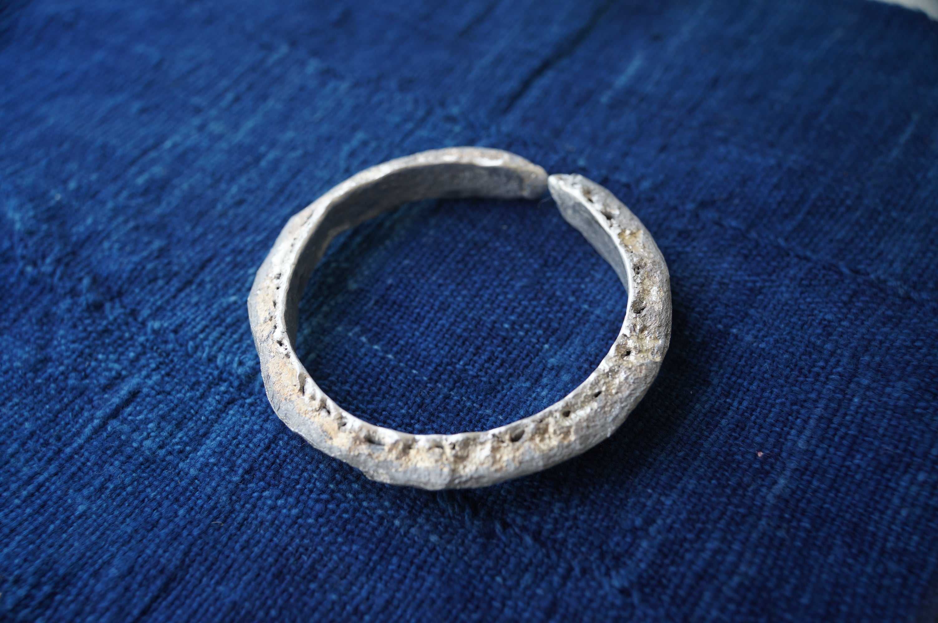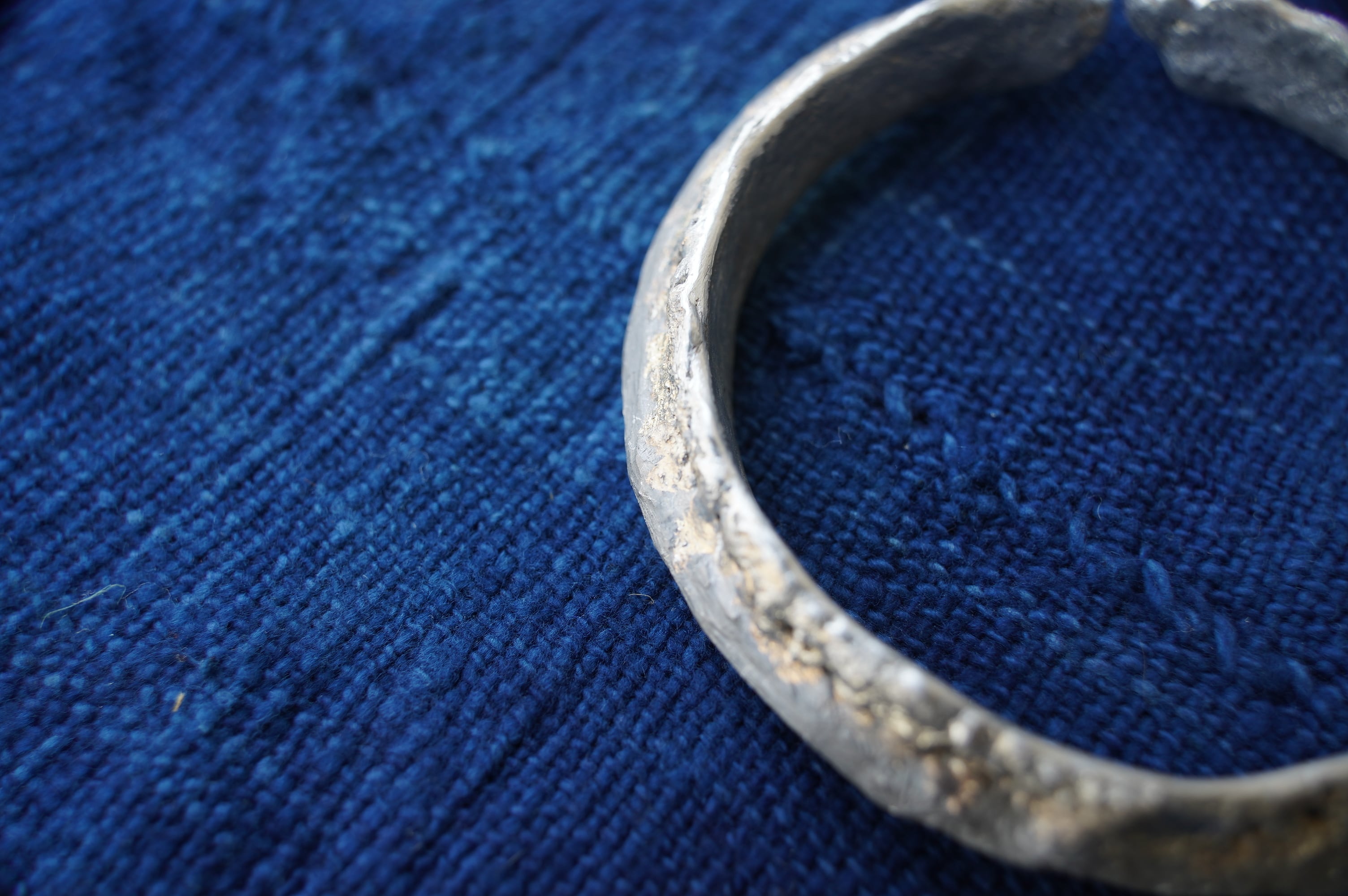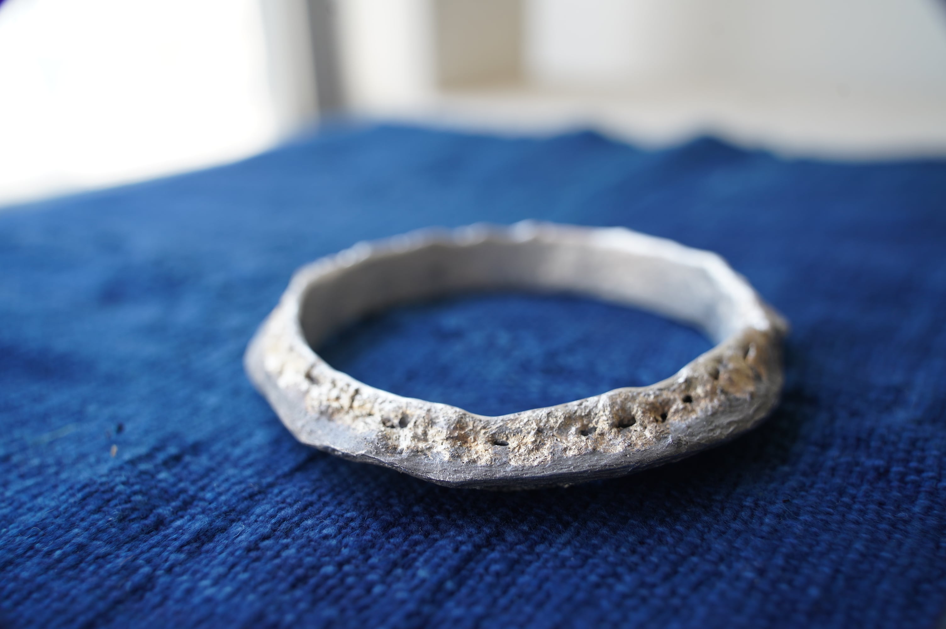 今回の鈴木さんの個展の見どころ、アルミ素材のバングル。