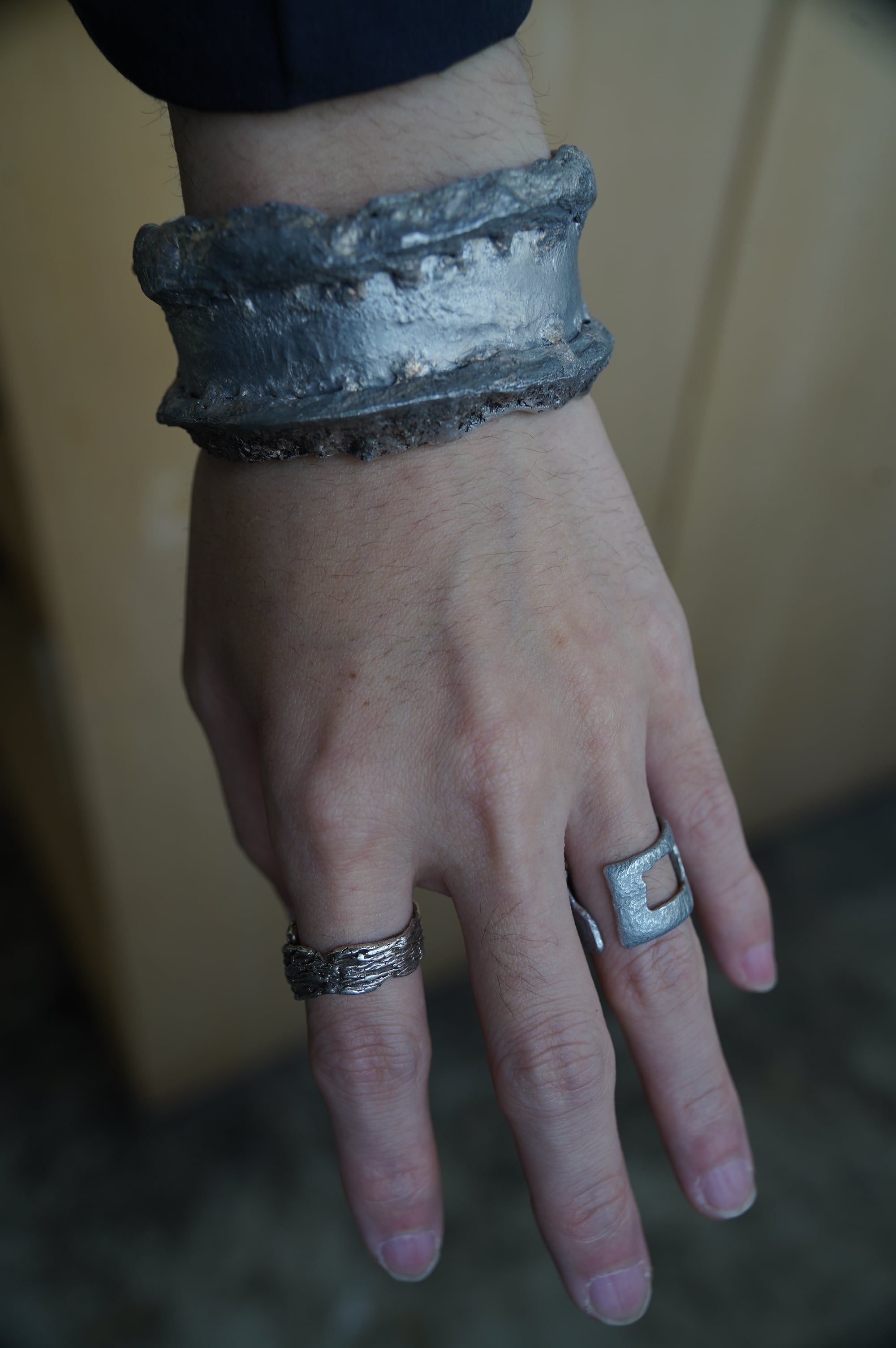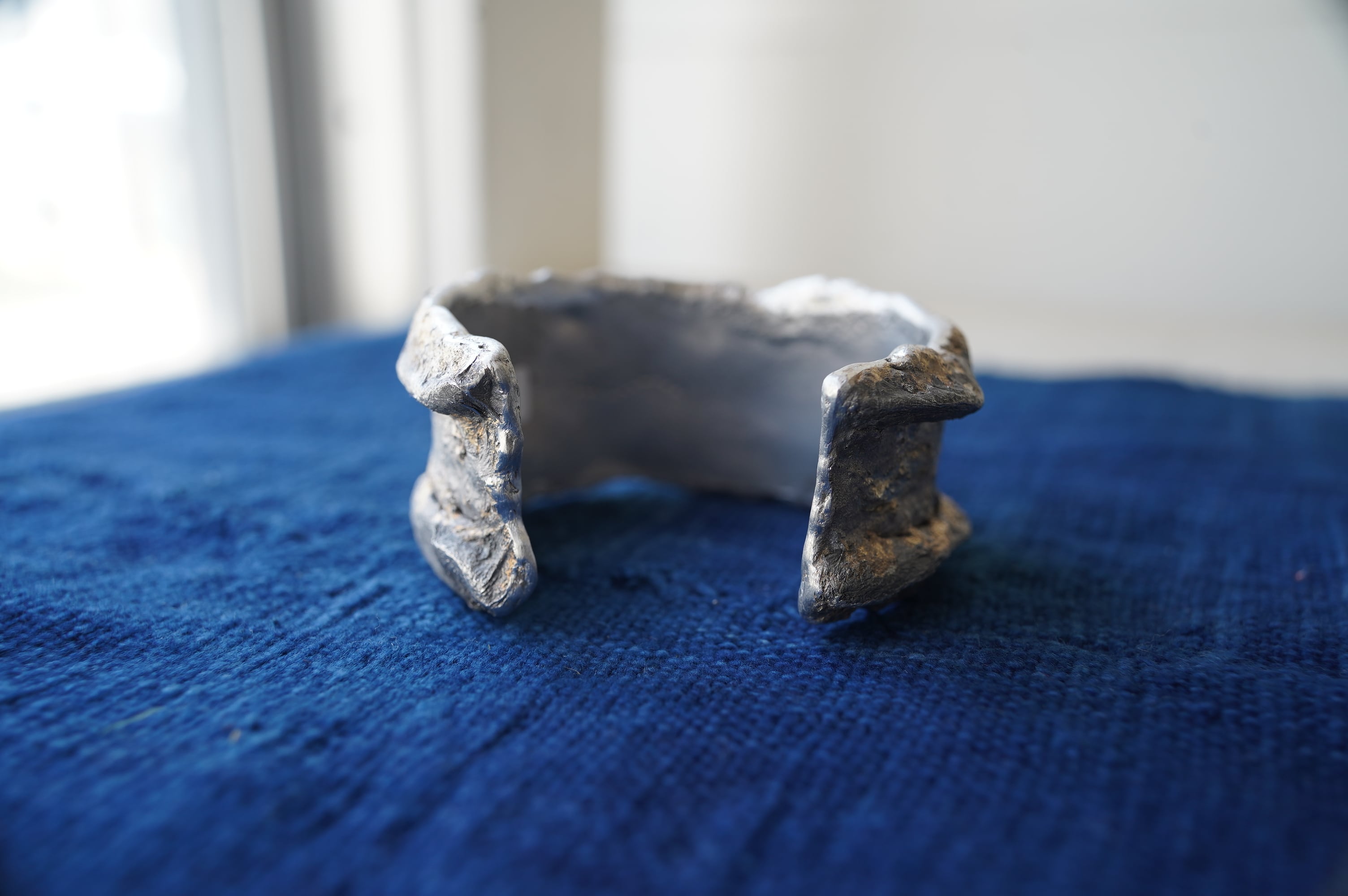 今回の鈴木さんの個展の見どころ、アルミ素材のバングル。