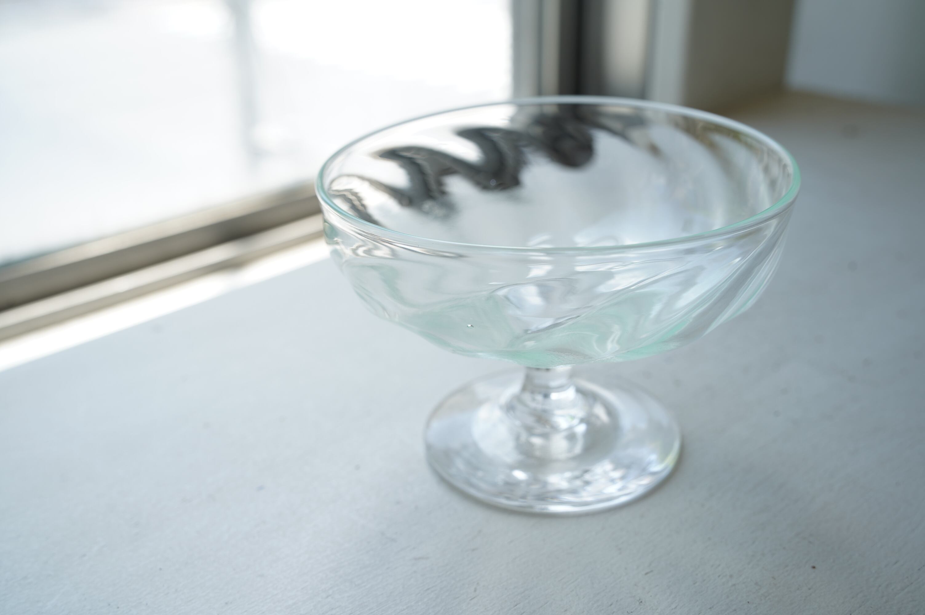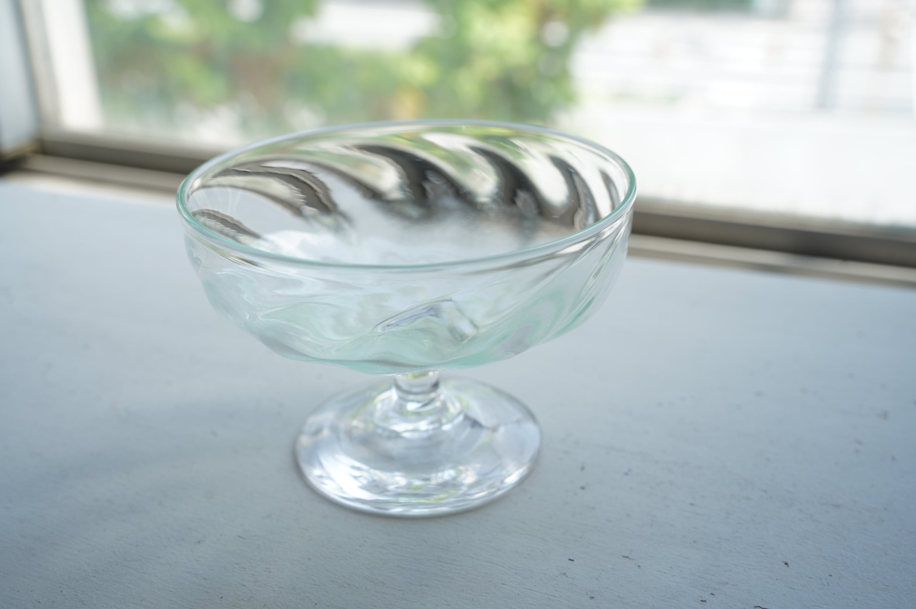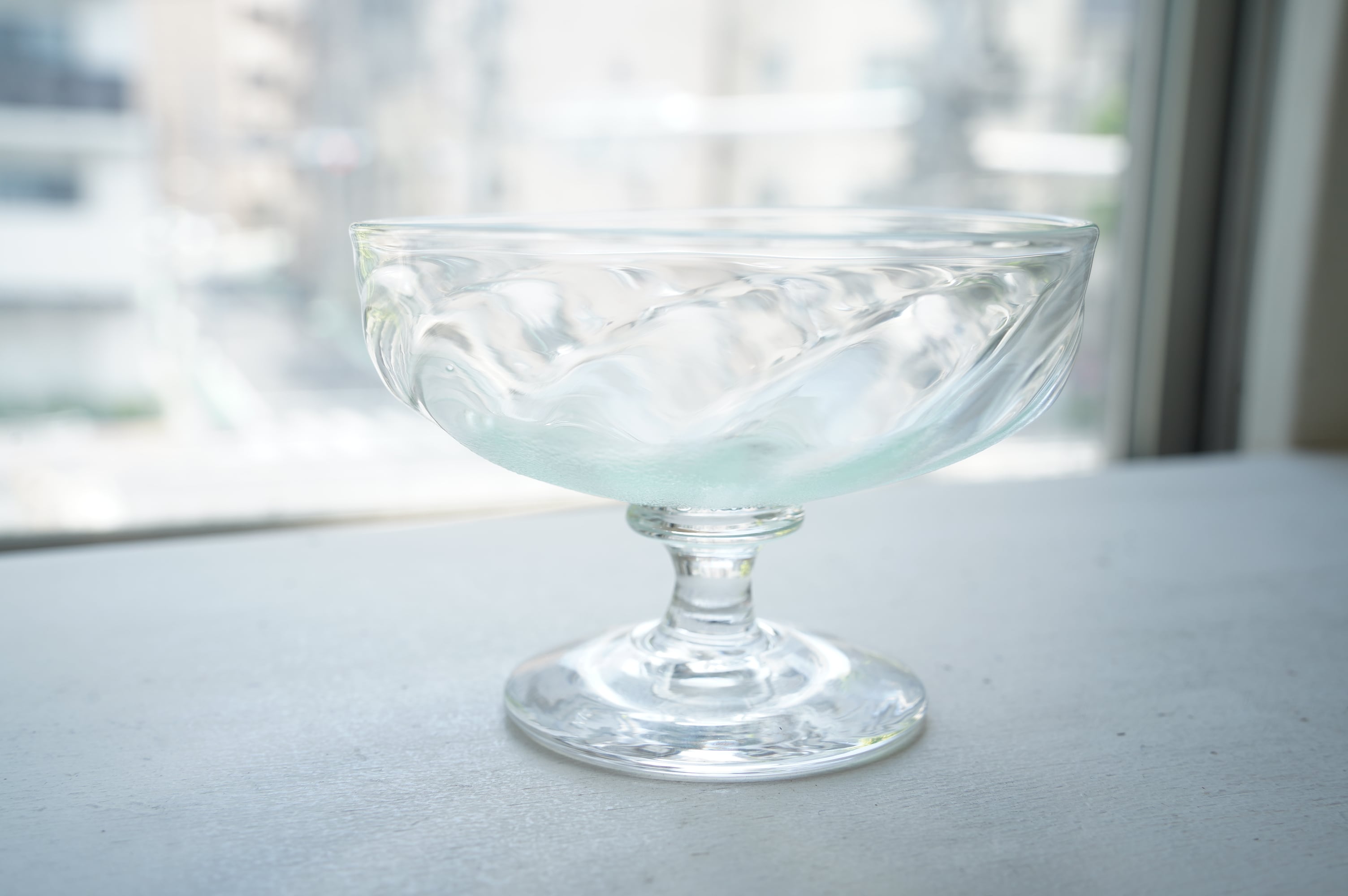 吹きガラスで作られた薄荷色の器と重なった色が魅惑的な光を放つ花器