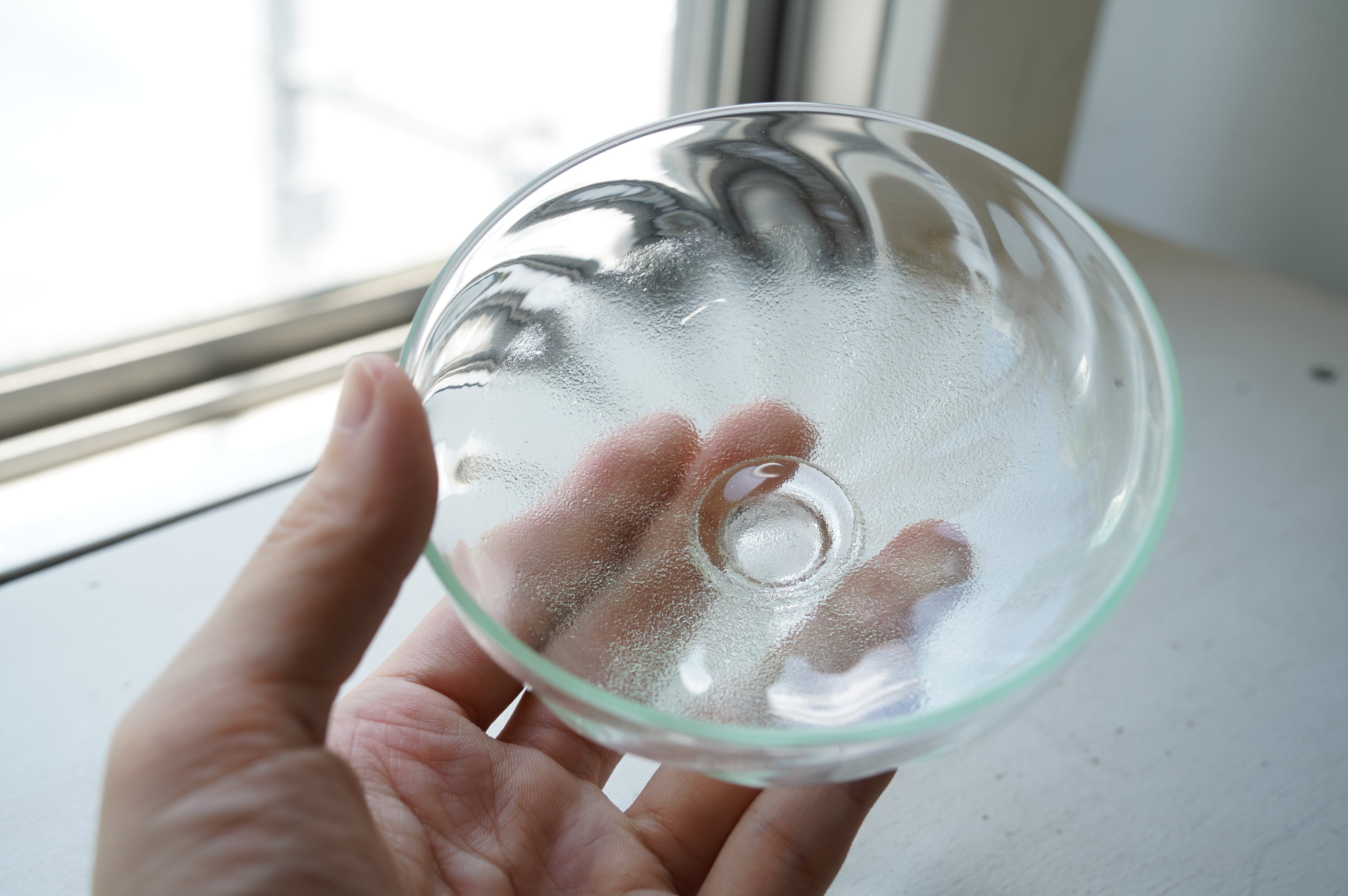 神奈川県で制作する山崎さんは宙吹きと色を重ね形作ったガラスにパターンを丁寧に描き削っていくサンドブラストという2種類の技法を使いわけ作品を作っています。