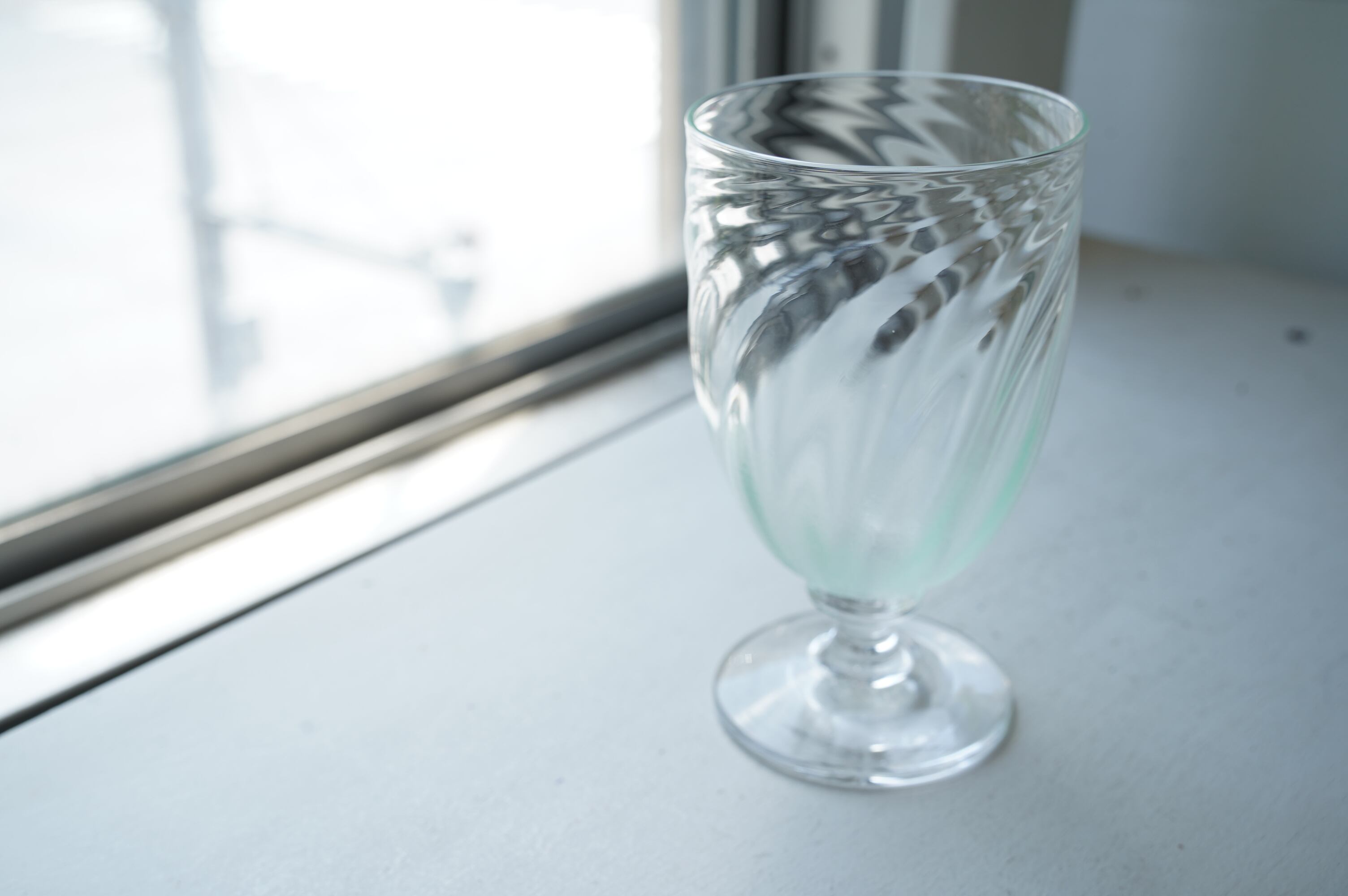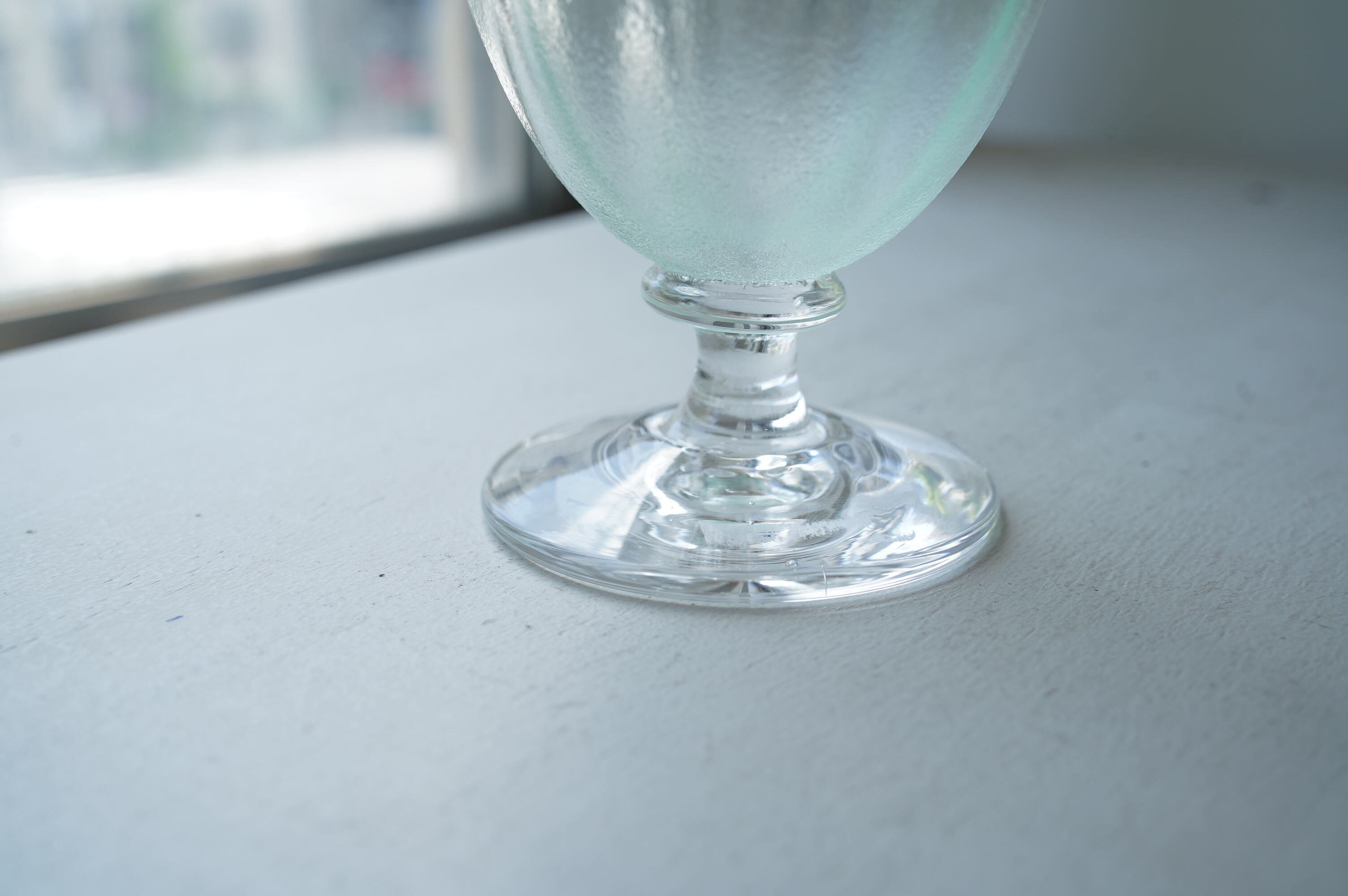 吹きガラスで作られた薄荷色の器と重なった色が魅惑的な光を放つ花器